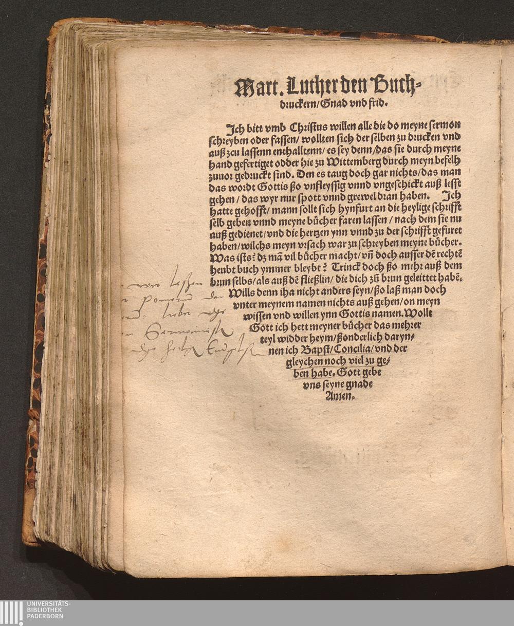 Mart. Luther den Buchdruckern/ Gnad vnd frid.