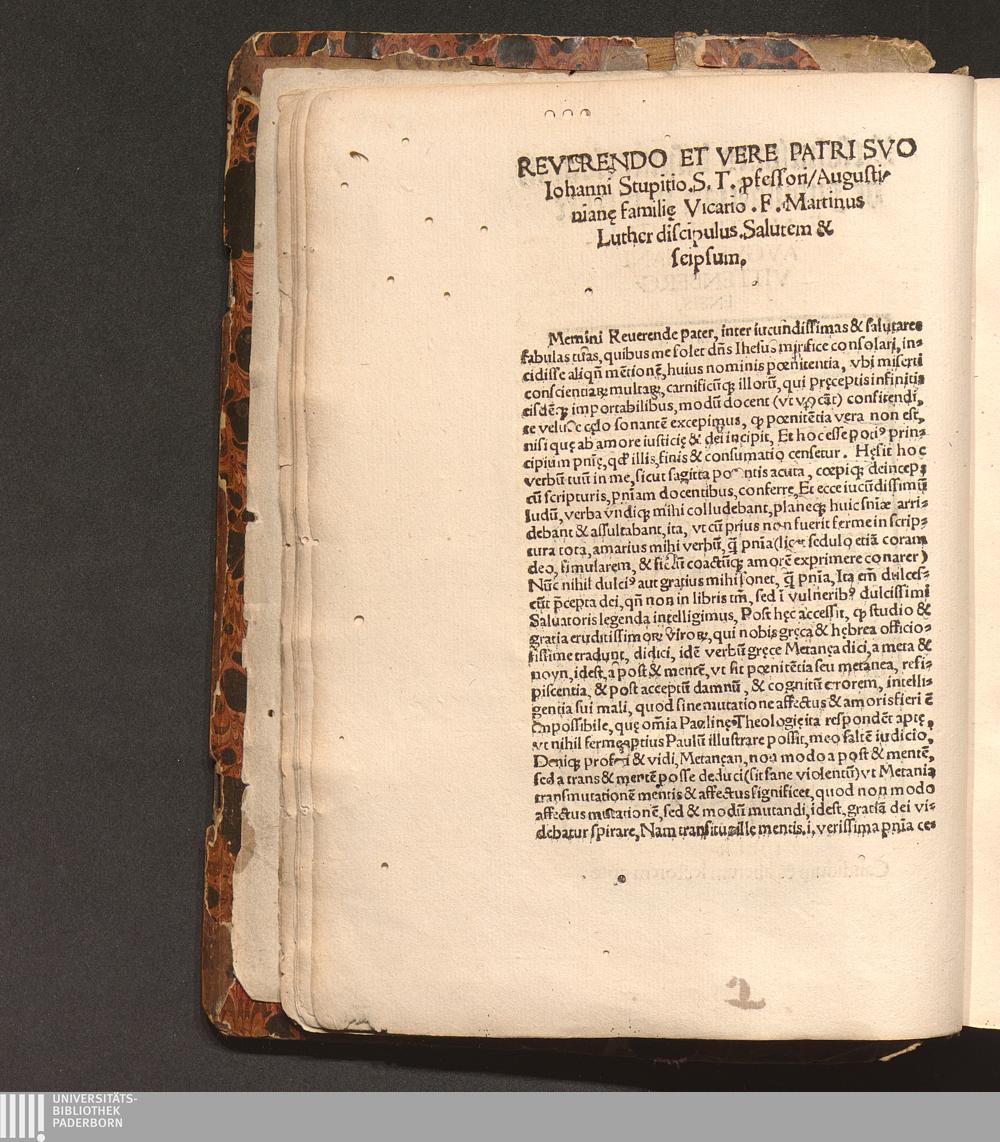 Reverendo Et Vere Patri Svo Iohanni Stupitio. S. T. p[ro]fessori/ Augustinian[a]e[...]
