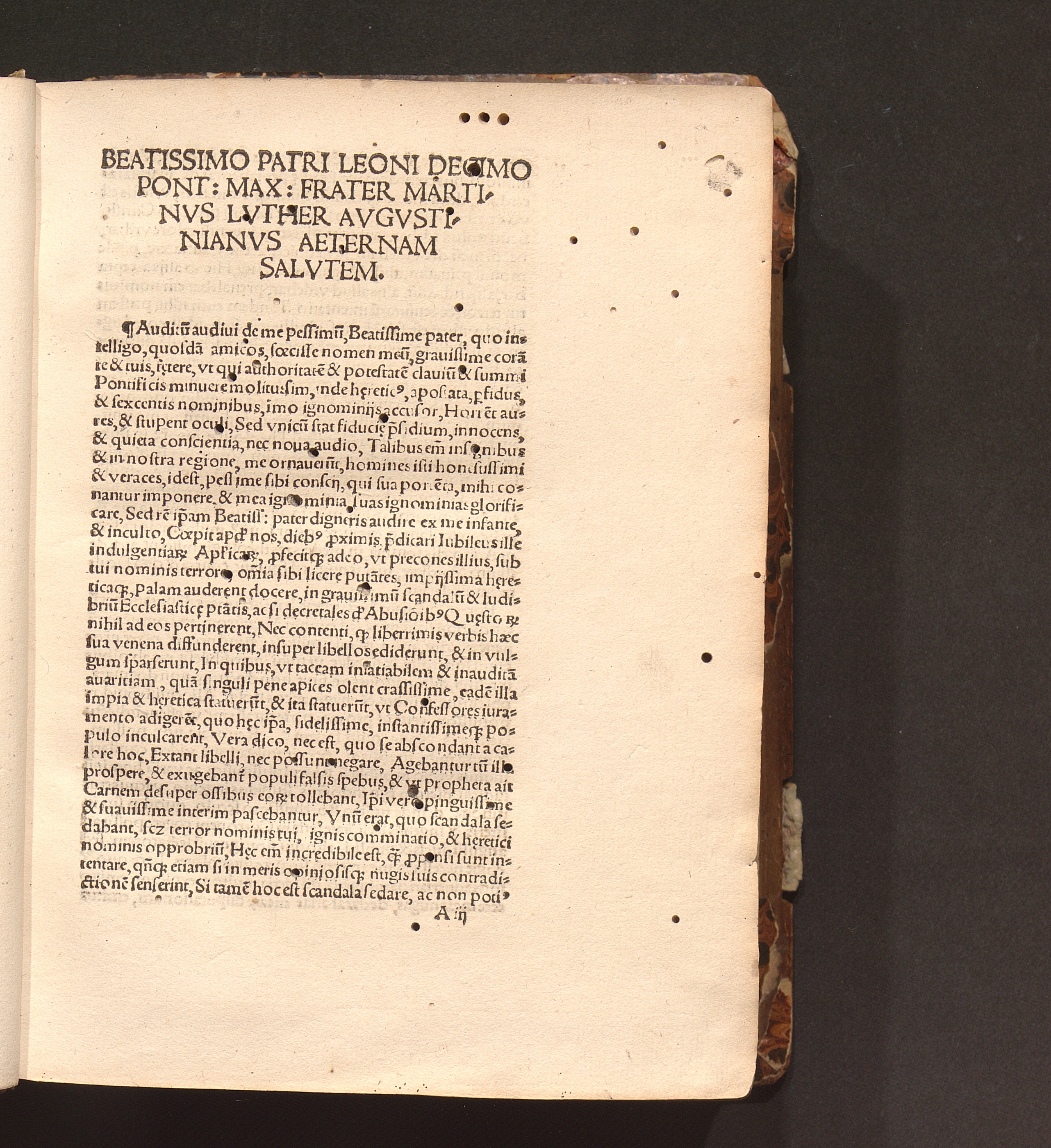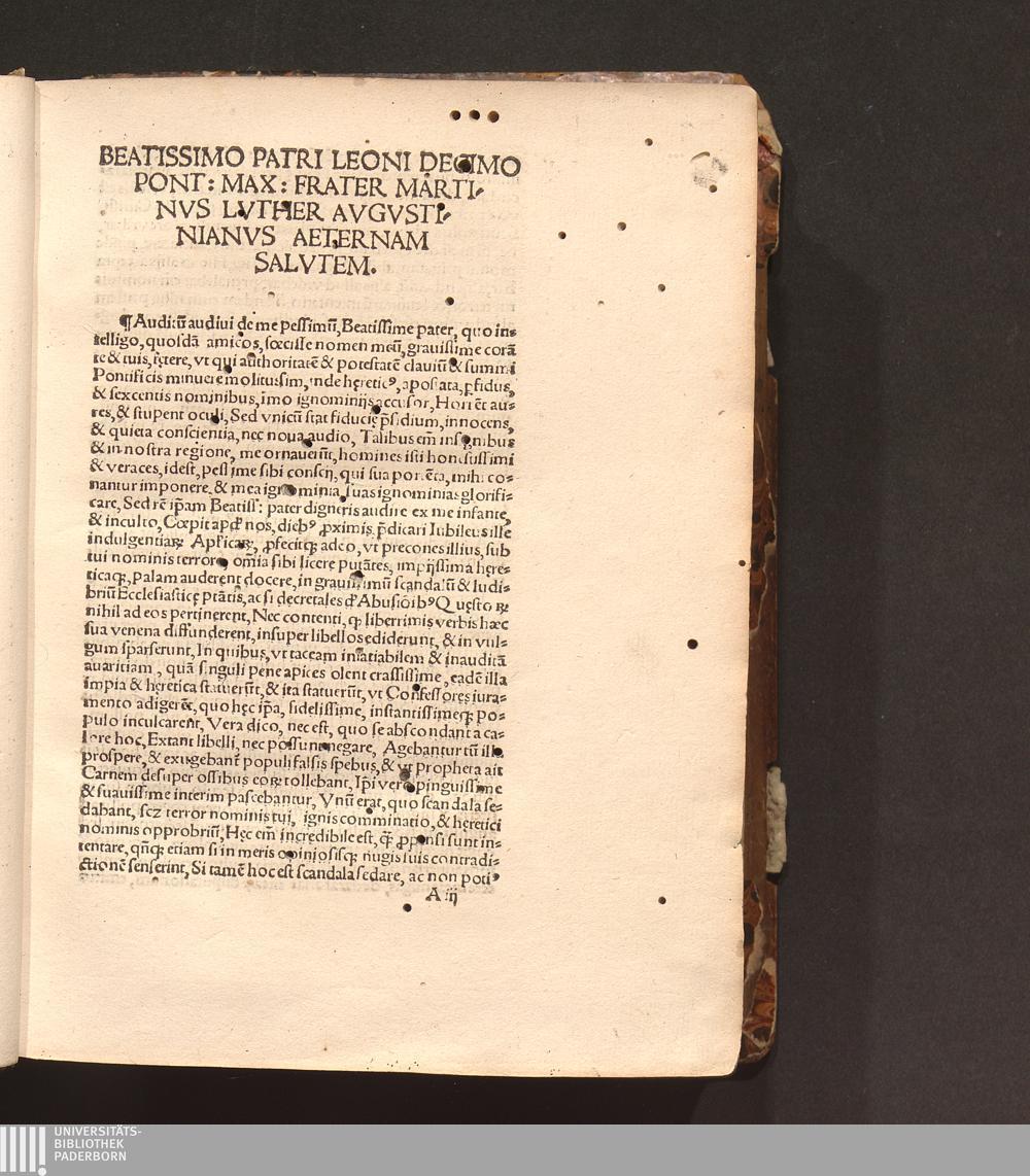 Beatissimo Patri Leoni Decimo Pont: Max: Frater Martinvs Lvther Avgvstinianvs Aeternam[...]