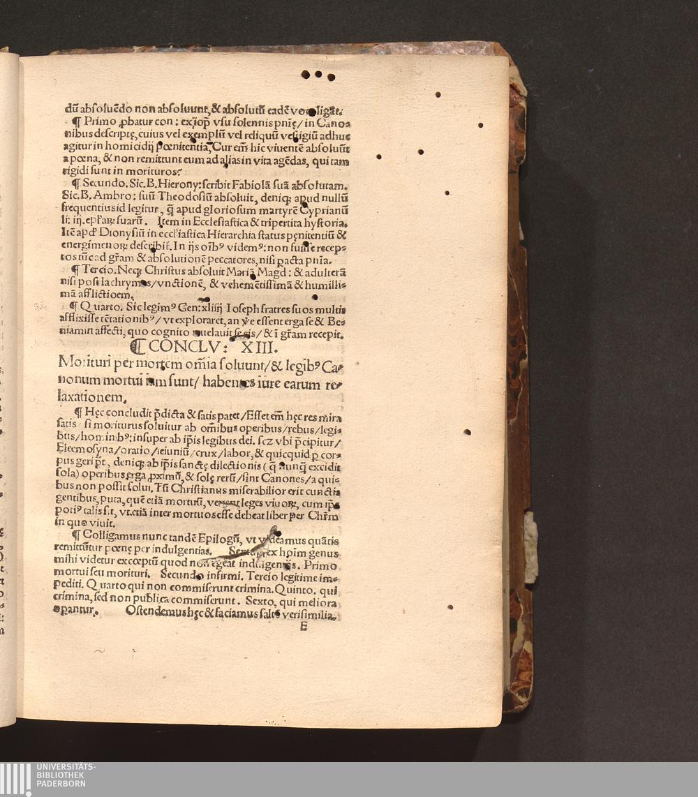 Conclv: XIII. Morituri per mortem om[n]ia soluunt/ & legib[us] Canonum mortui iam[...]