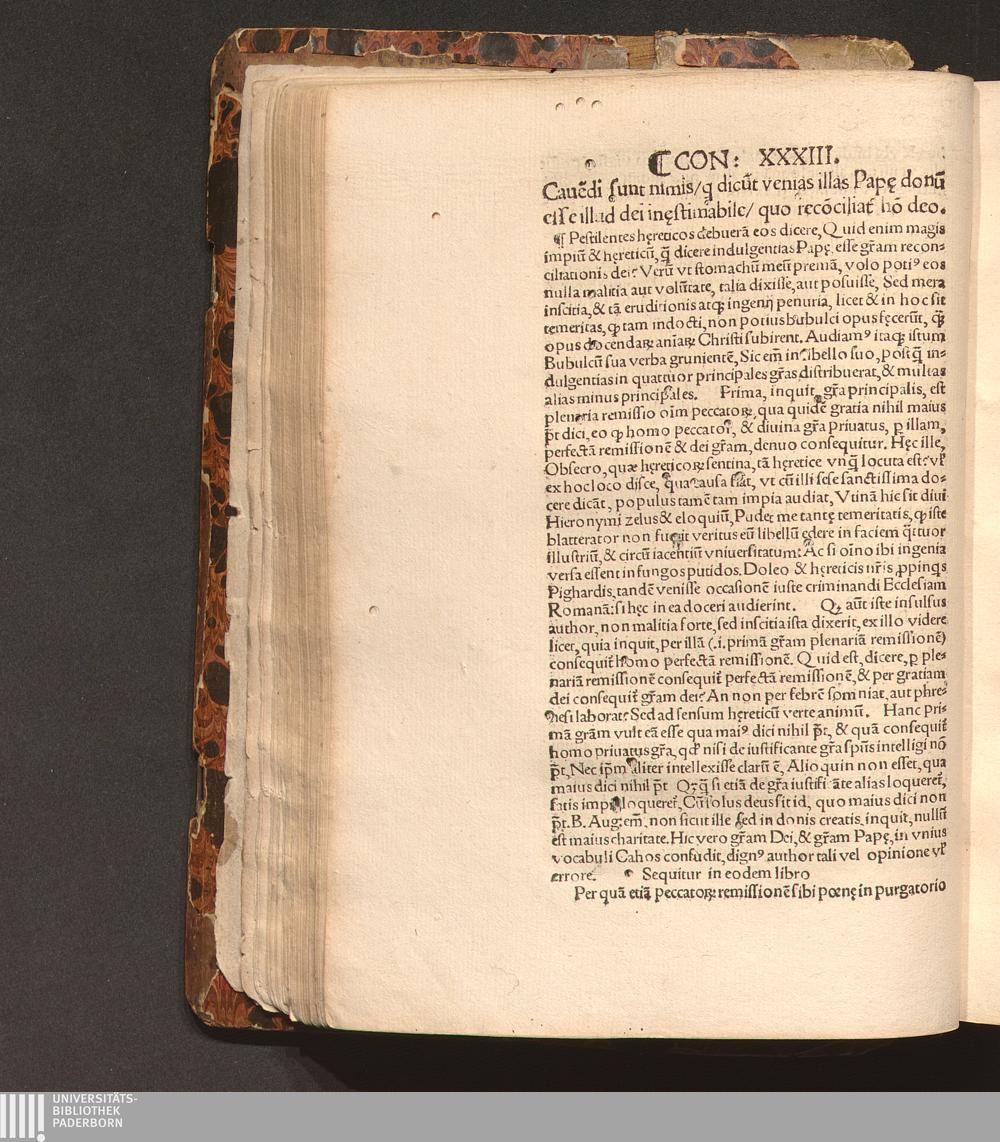 Con: XXXIII. Caue[n]di sunt nimis/ q[ui] dicu[n]t venias illas Pap[a]e donu[m] esse[...]