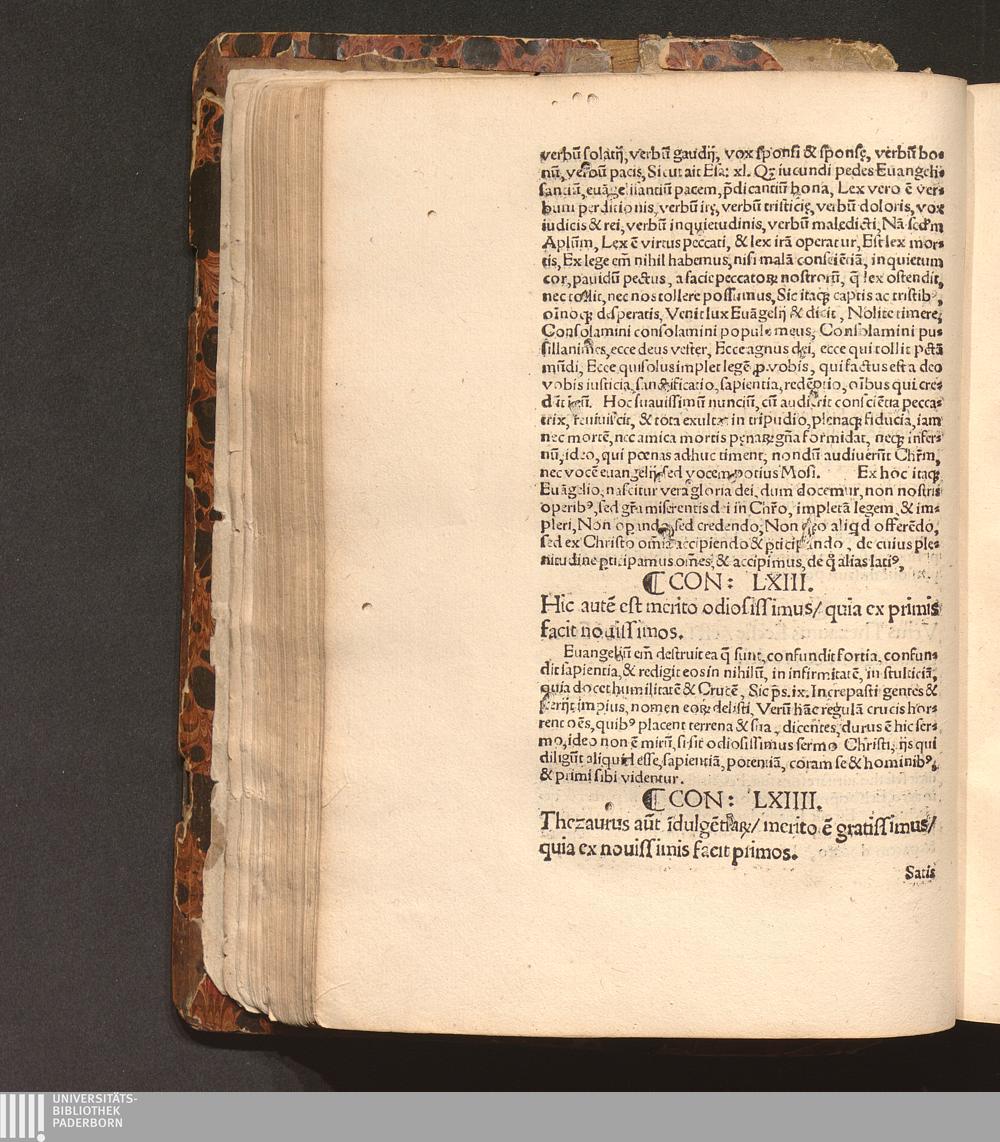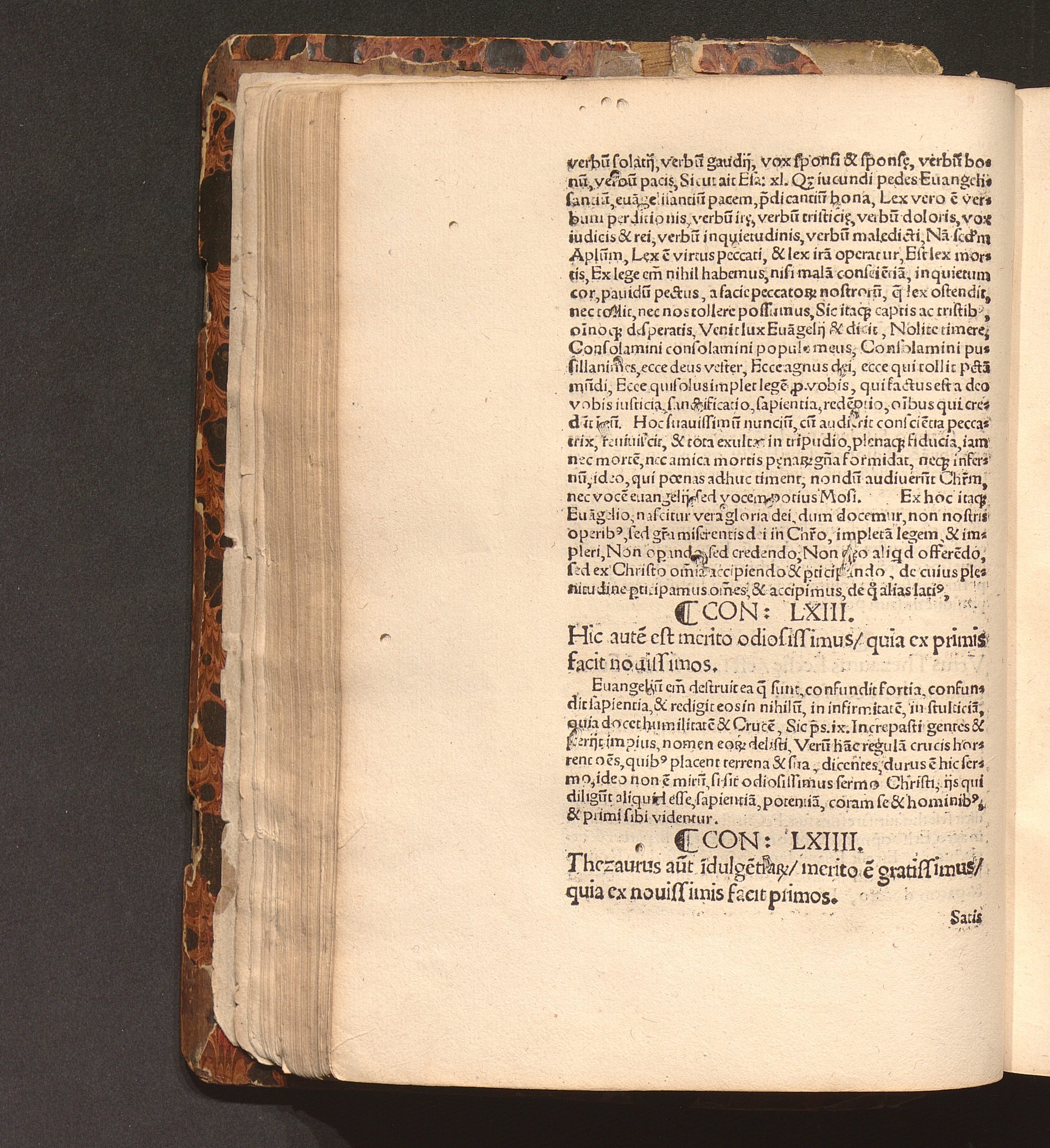 Con: LXIIII. Thezaurus au[...] i[n]dulge[n]tia[rum]/ merito e[st] gratissimus/ quia[...]