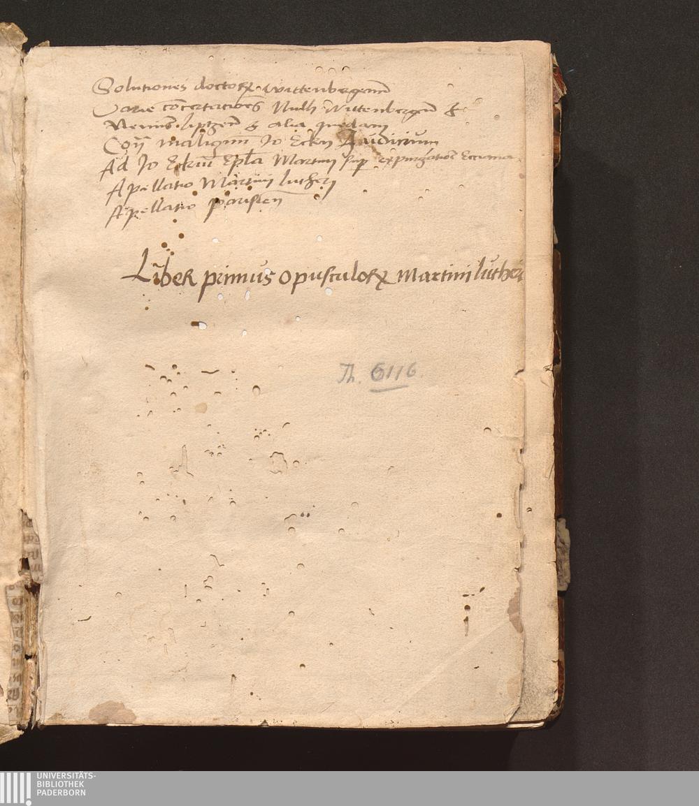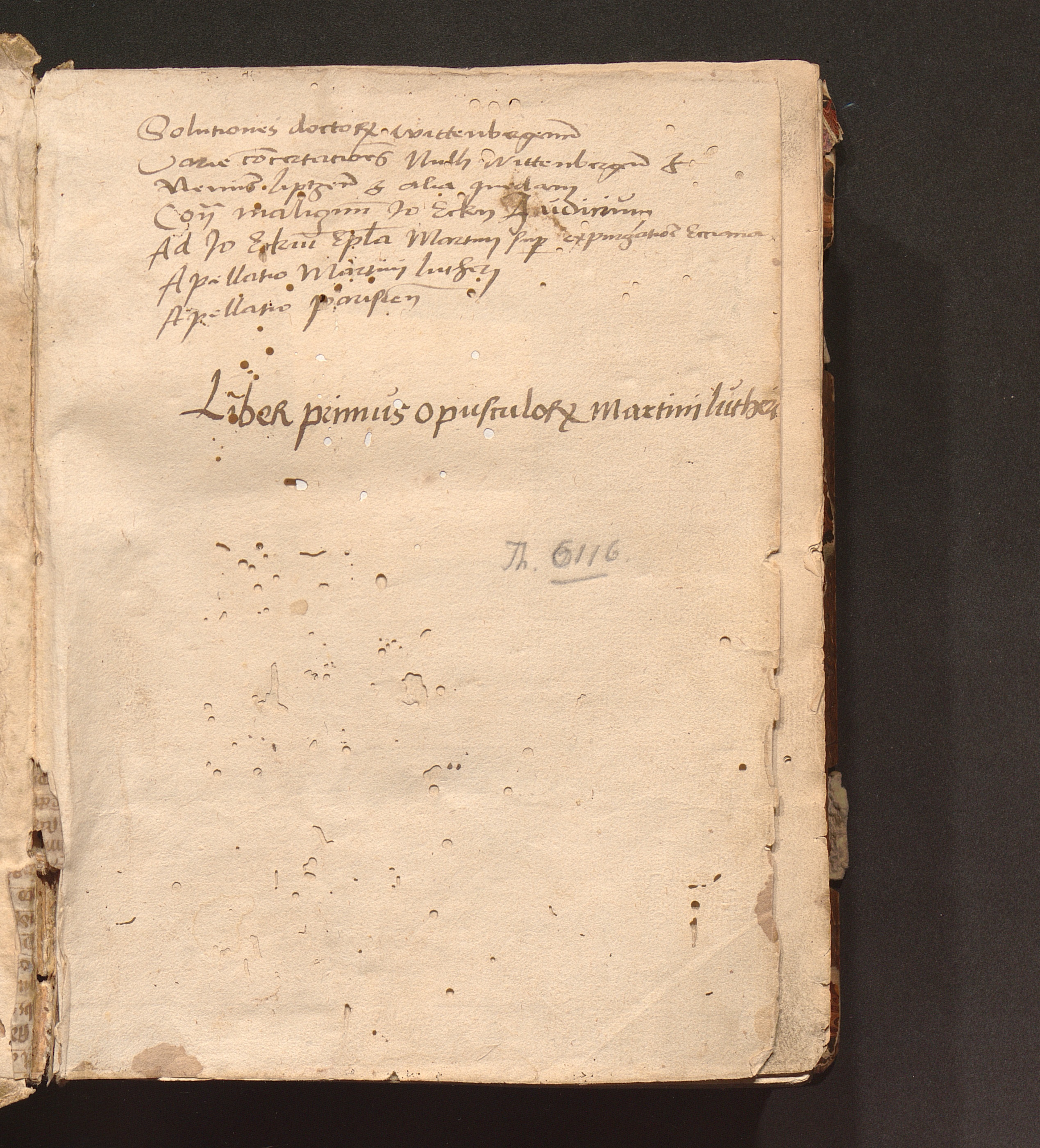 Ihesvs. Ervditissimo Viro Et Prestantissimo. D. Andre[a]e Bodenstein Carlstadio sync[a]erioris Theologi[a]e assertori facile primario. Archidiacono Vuittenbergen[sis]. pr[a]eceptori ac maiori suo in Chr[ist]o Martinus Luther August.