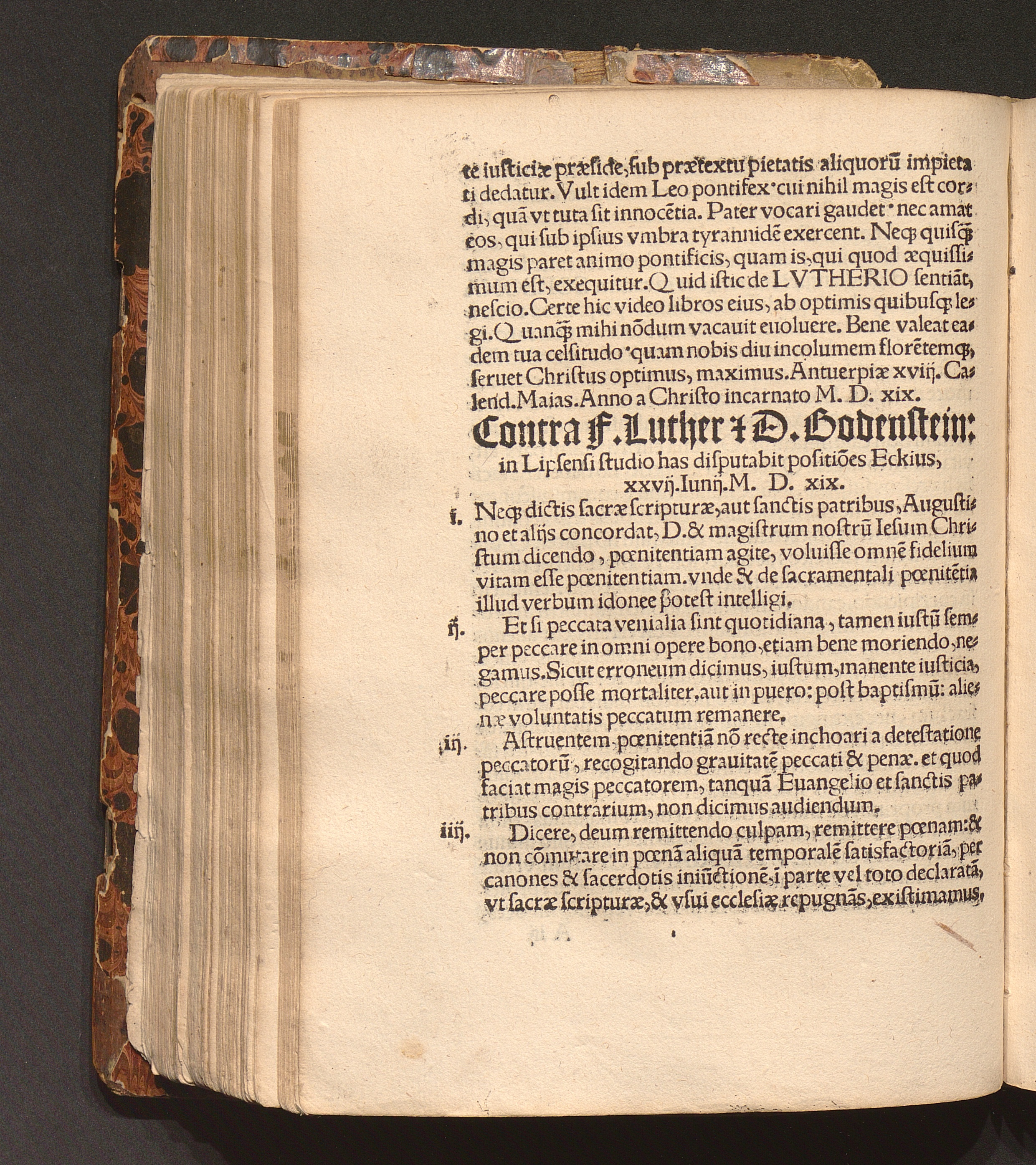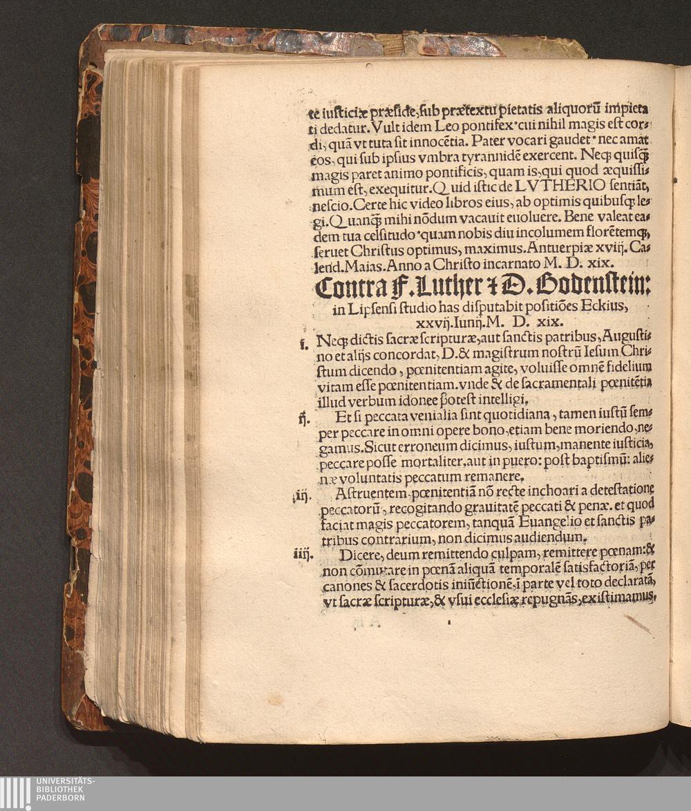 Contra F. Luther [et] D. Bodenstein: in Lipsensi studio has disputabit positio[n]es Eckius, xxvij. Iunij. M. D. xix.