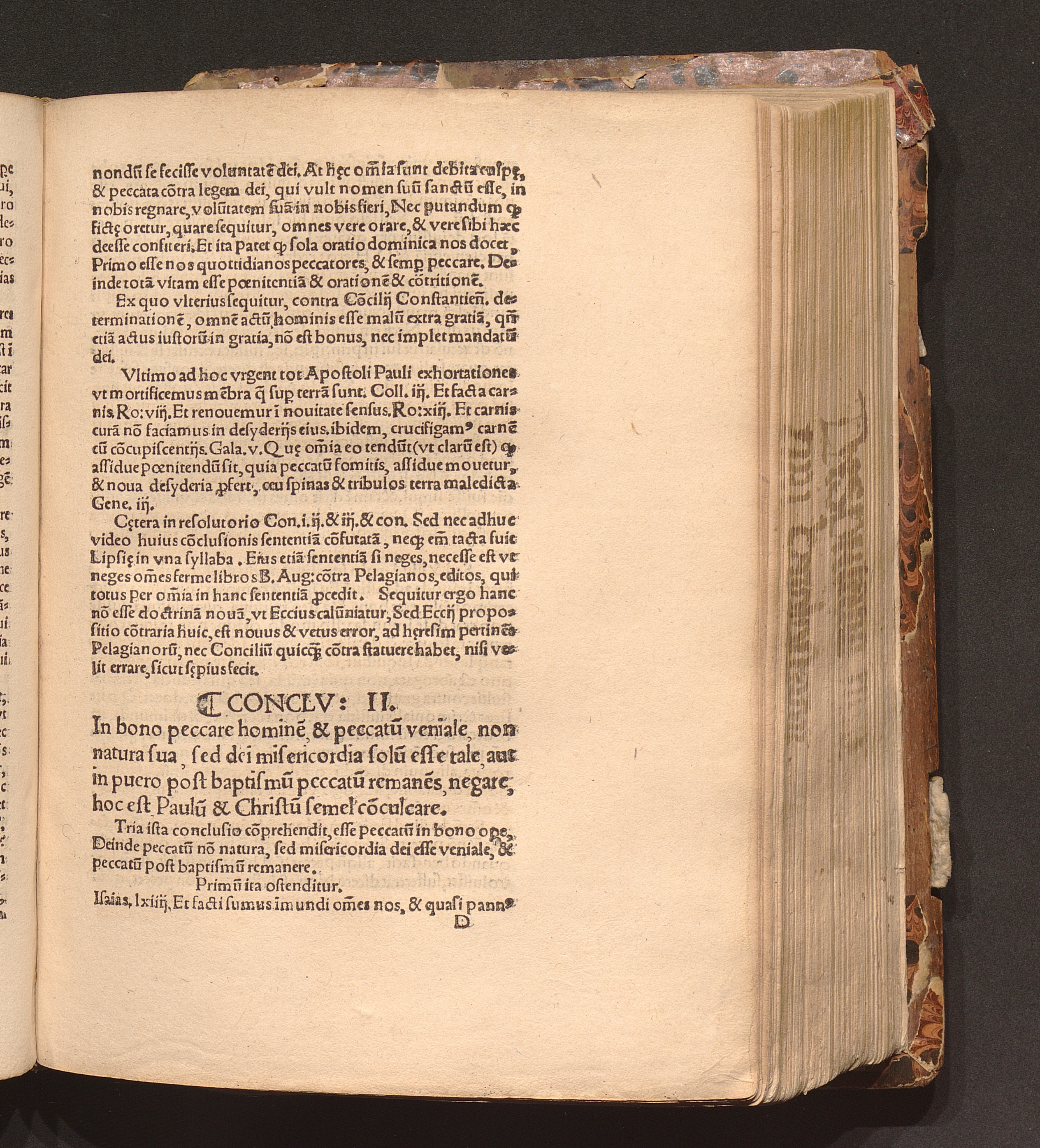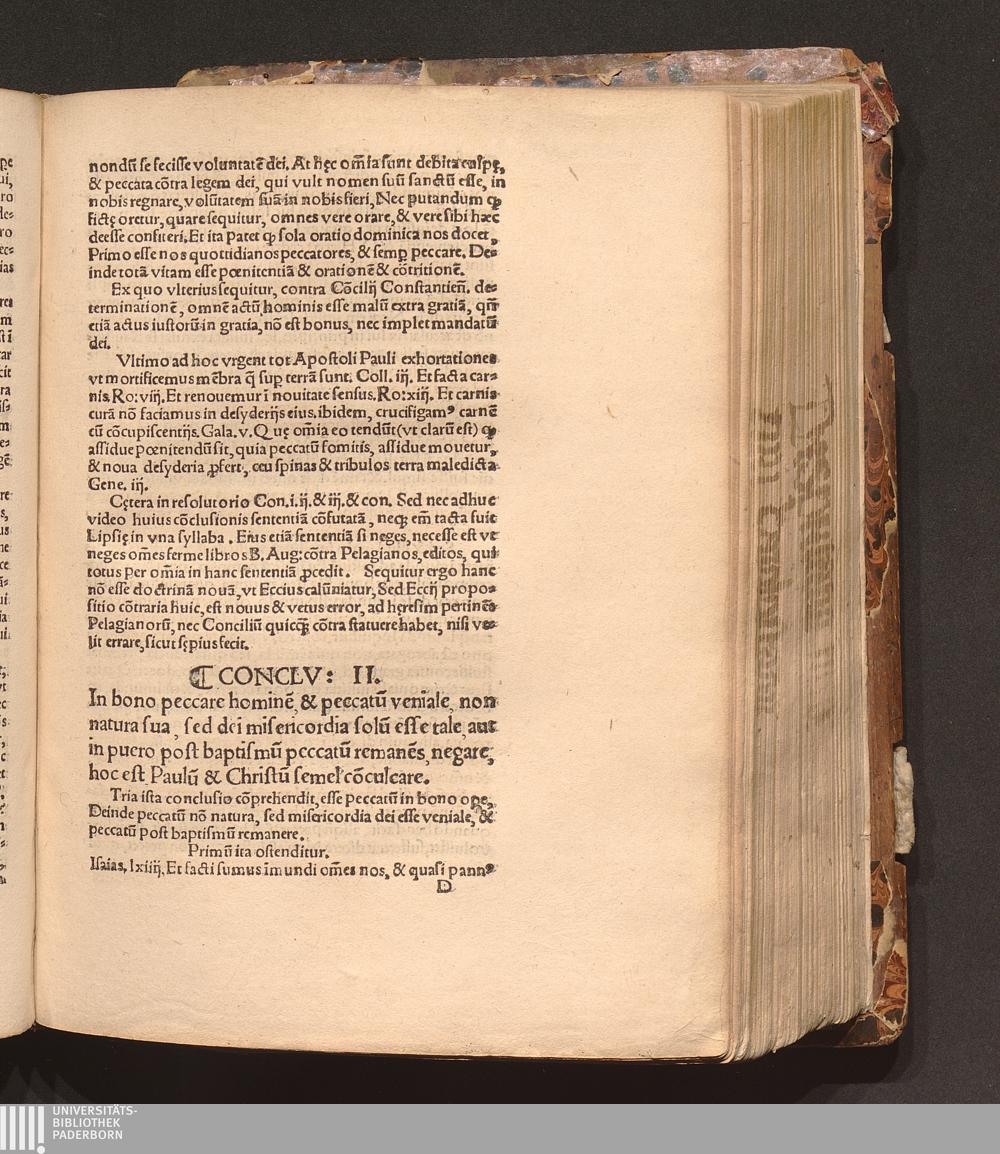 Conclv: II. In bono peccare homine[m], & peccatu[m] veniale, non natura sua, sed dei misericordia solu[m] esse tale, aut in puero post baptismu[m] peccatu[m] remane[n]s, negare, hoc est Paulu[m] & Christu[m] semel co[n]culcare.