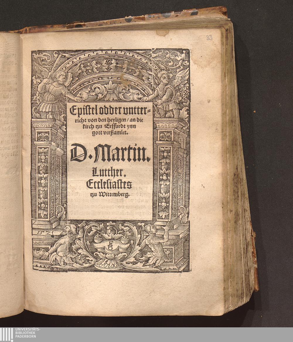 Epistel odder vntter-||richt von den heyligen/ an die || kirch tzu Erffurdt ynn || gott verßamlet.|| / D. Martin.|| Lutther.|| Ecclesiastes || tzu Wittemberg.||