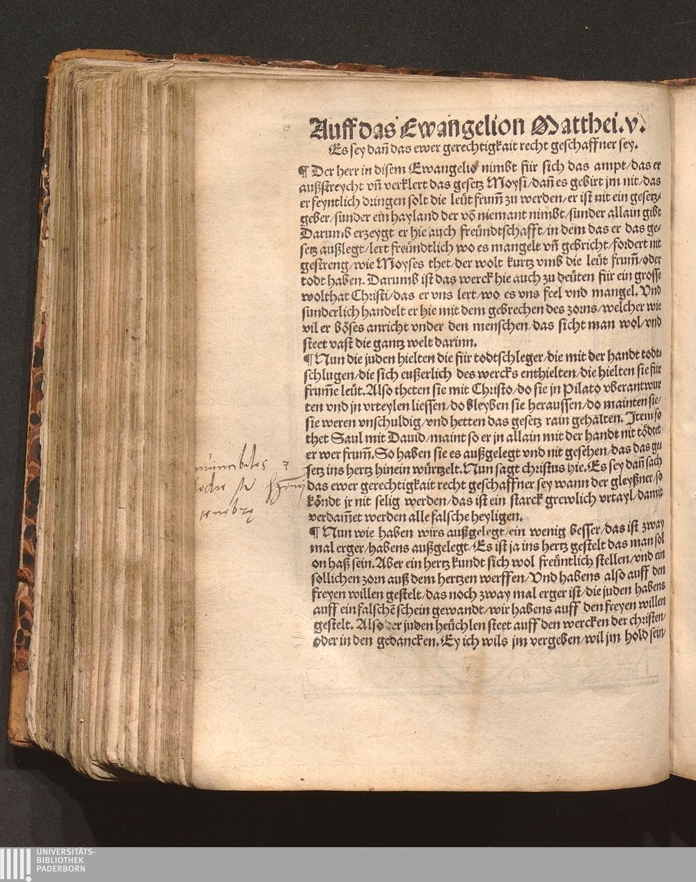 Auff das Ewangelion Matthei. v. Es sey dan[n] das ewer gerechtigkait recht geschaffner[...]