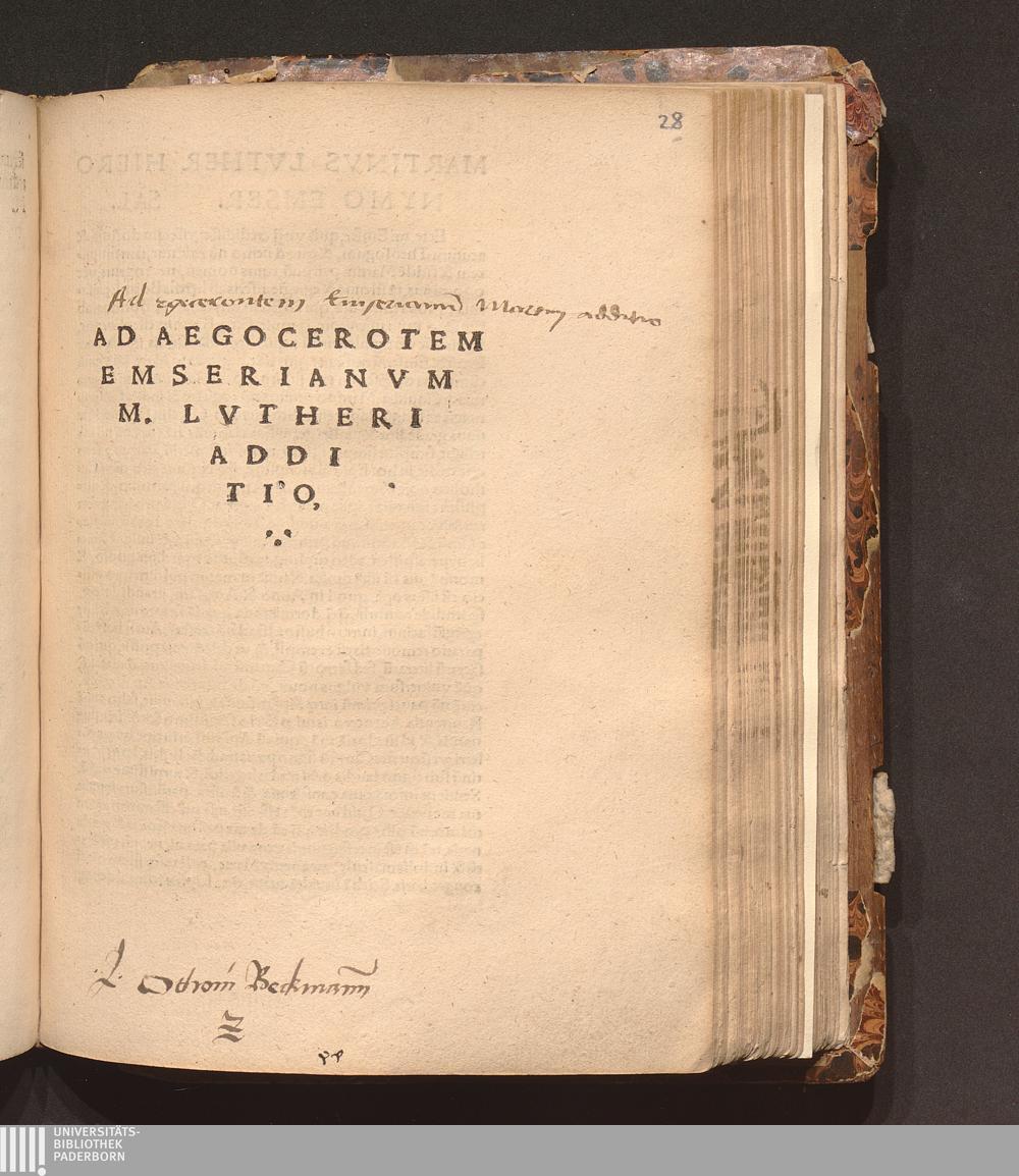 Ad Aegocerotem Emserianvm M. Lvtheri Additio