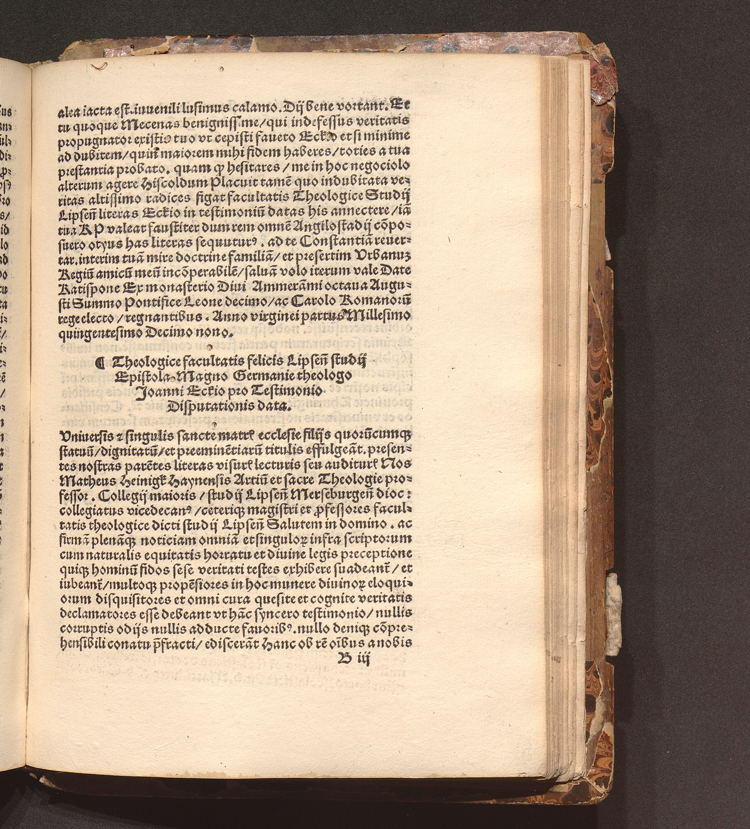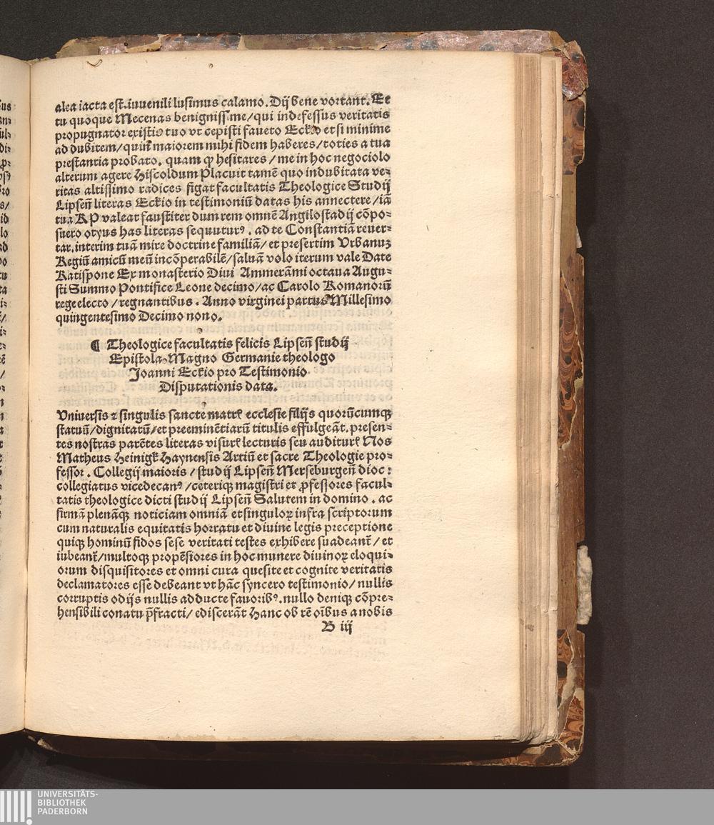 Theologice facultatis felicis Lipsen[sis] studij Epistola Magno Germanie theologo Joanni Eckio pro Testimonio Disputationis data.
