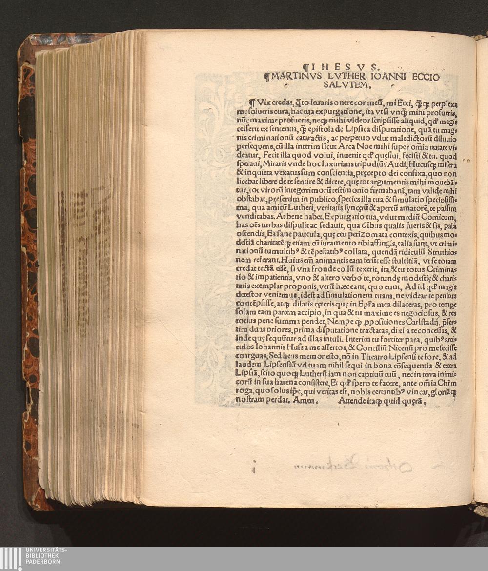 Ad Johannem Ecciu[m] Martini Lutheri Epistola super expurgatio[n]e Ecciana