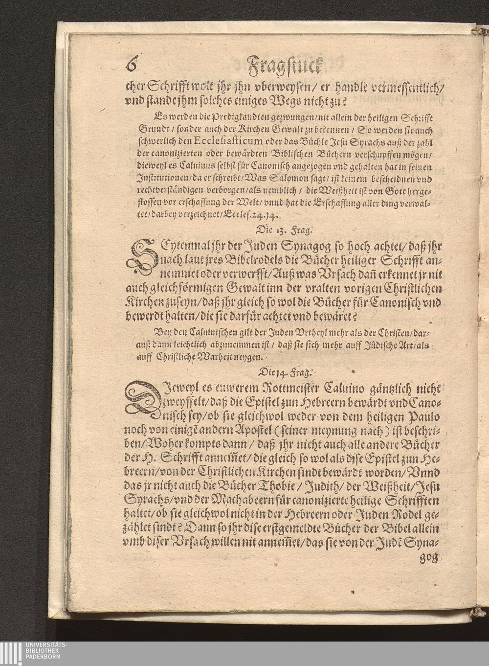 Fragstuck Des Christlichen Glaubens/ an die neuwe Sectische Predigkandten / Durch den Hochgelehrten H. Johann Hayum auß Schotten/ der Societet Jesu Theologum Frantzösisch beschriben/ Vnd folgends durch Sebastian Werro Pfarrherren zu Freyburg in der Eydgnoschafft/ in das Teutsch gebracht/ auch mit dem anderen Theyl vermehret/ vnd alles auff ein neuwes gebessert