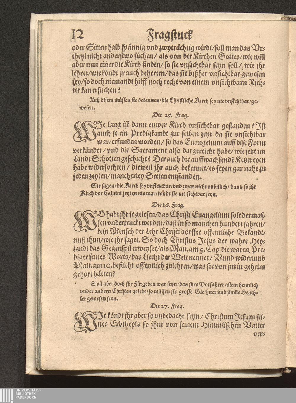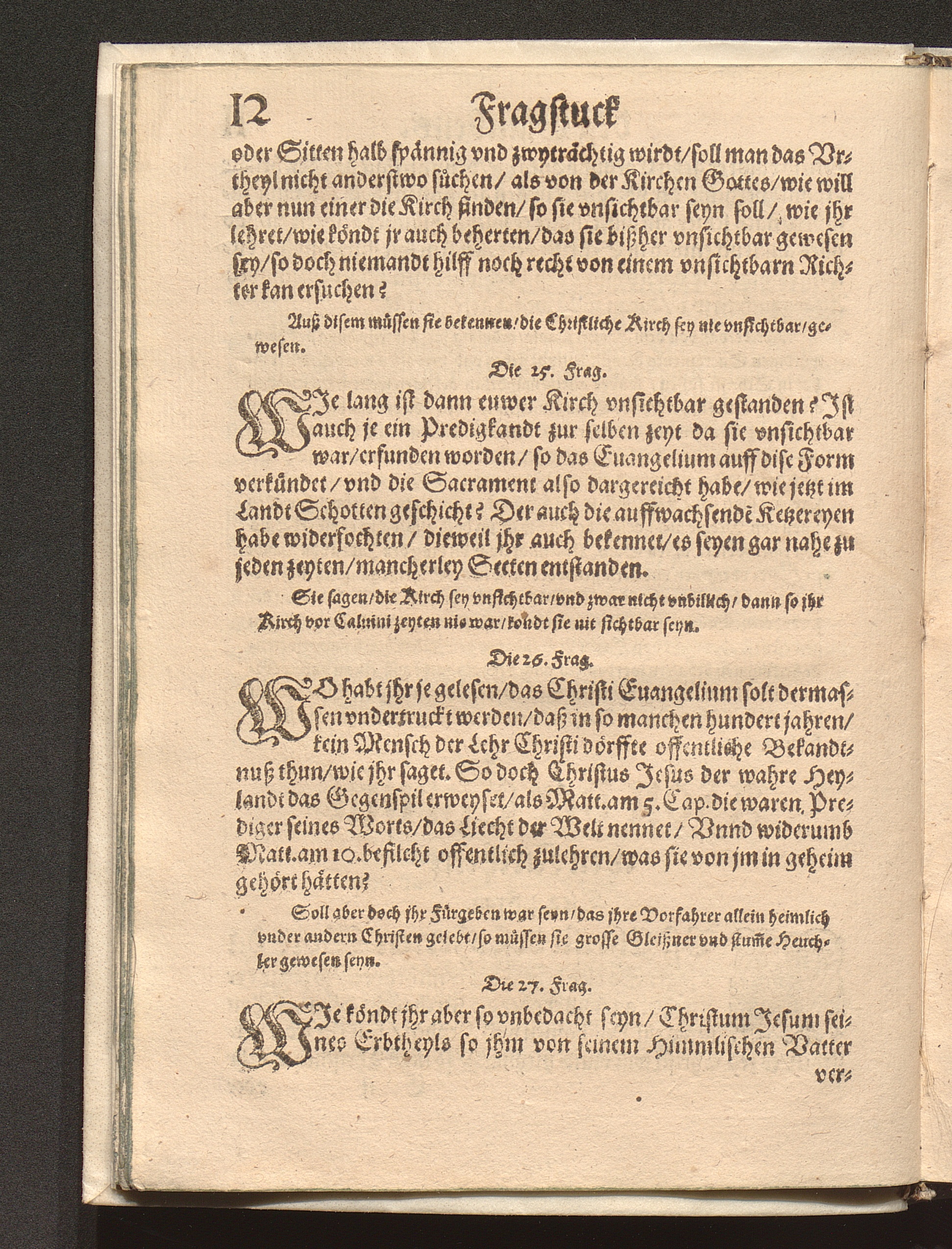 Fragstuck Des Christlichen Glaubens/ an die neuwe Sectische Predigkandten / Durch den Hochgelehrten H. Johann Hayum auß Schotten/ der Societet Jesu Theologum Frantzösisch beschriben/ Vnd folgends durch Sebastian Werro Pfarrherren zu Freyburg in der Eydgnoschafft/ in das Teutsch gebracht/ auch mit dem anderen Theyl vermehret/ vnd alles auff ein neuwes gebessert