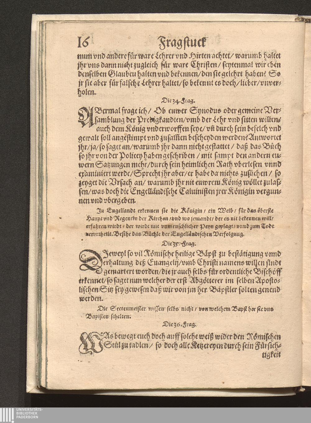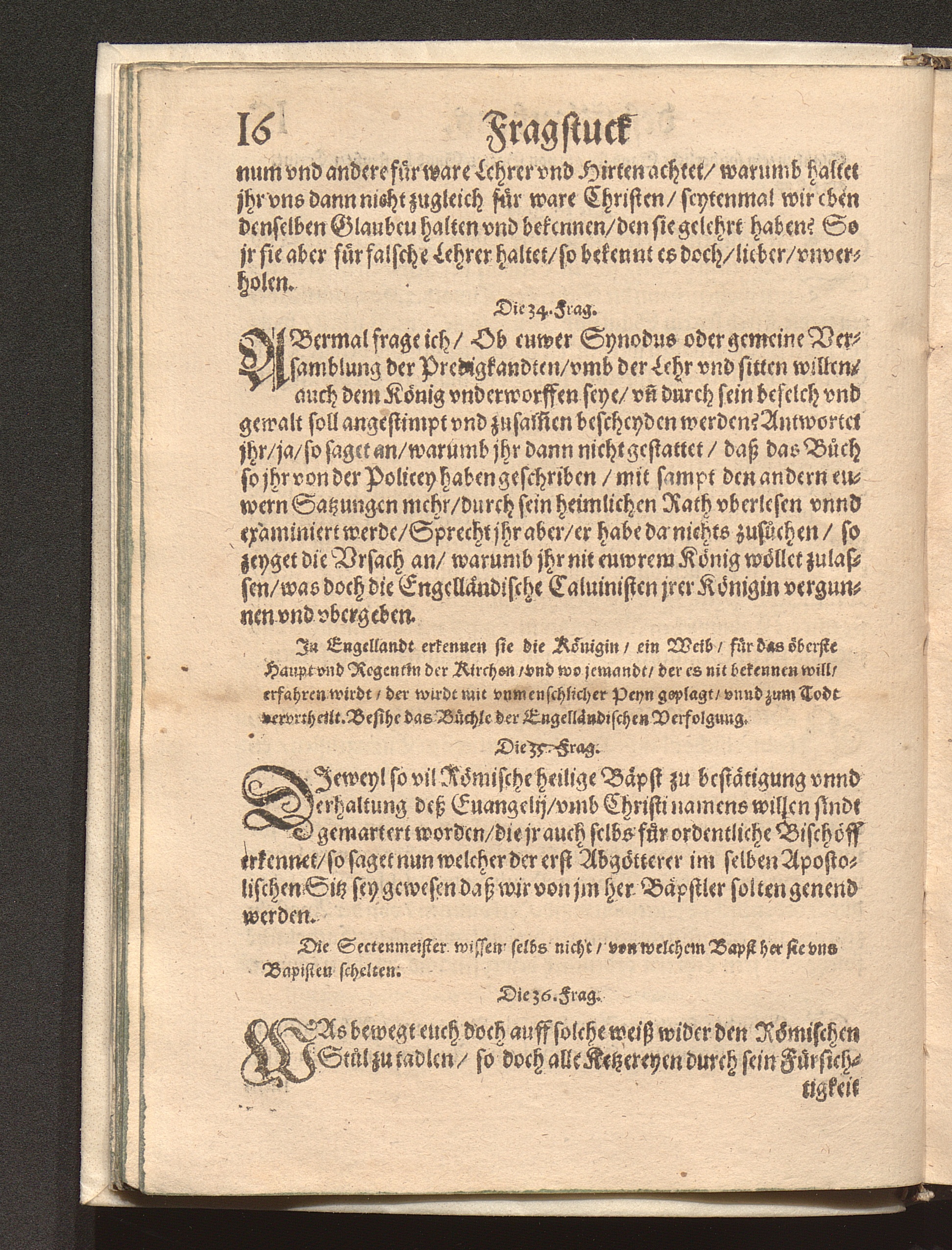 Fragstuck Des Christlichen Glaubens/ an die neuwe Sectische Predigkandten / Durch den Hochgelehrten H. Johann Hayum auß Schotten/ der Societet Jesu Theologum Frantzösisch beschriben/ Vnd folgends durch Sebastian Werro Pfarrherren zu Freyburg in der Eydgnoschafft/ in das Teutsch gebracht/ auch mit dem anderen Theyl vermehret/ vnd alles auff ein neuwes gebessert