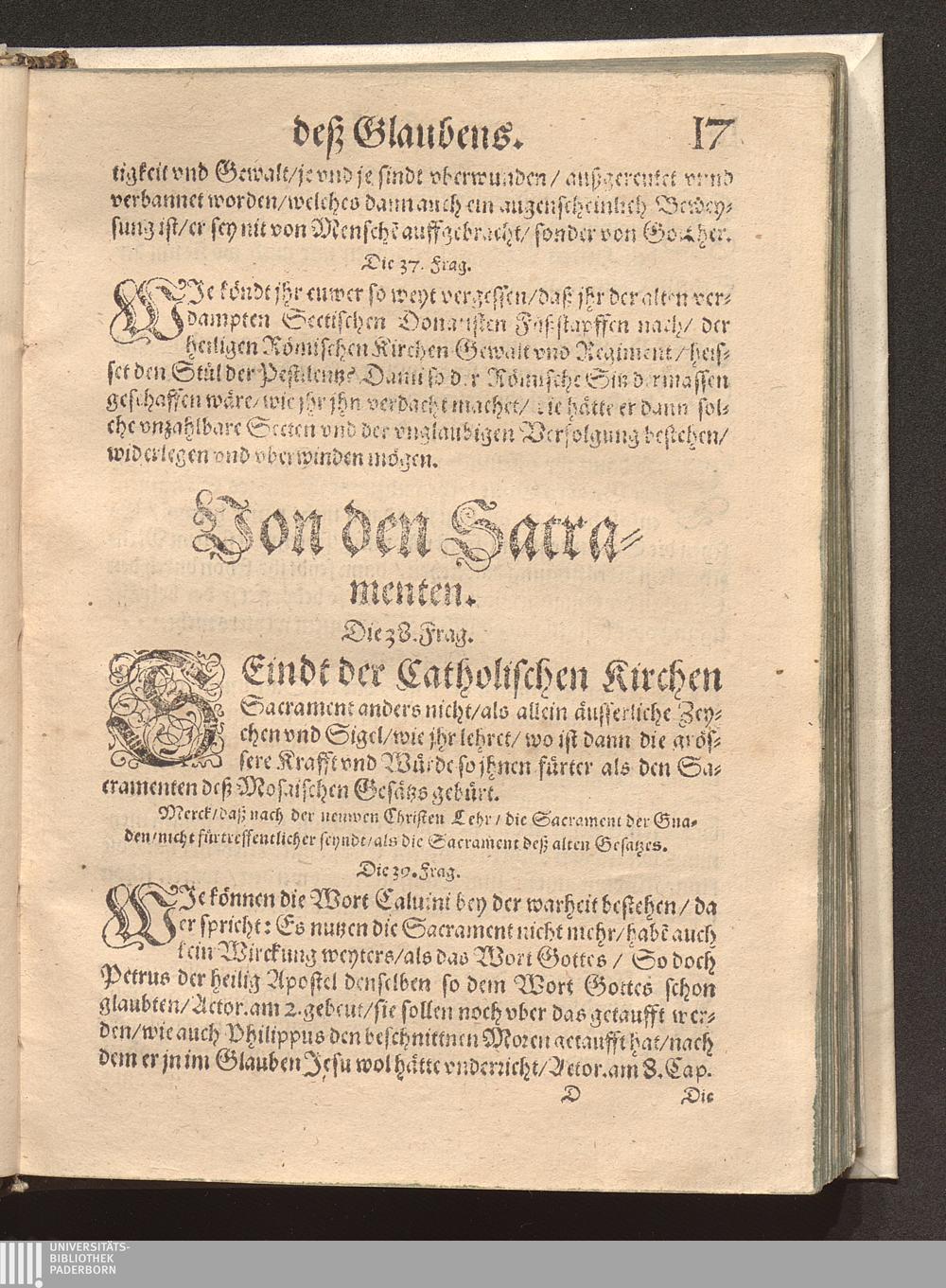 Fragstuck Des Christlichen Glaubens/ an die neuwe Sectische Predigkandten / Durch den Hochgelehrten H. Johann Hayum auß Schotten/ der Societet Jesu Theologum Frantzösisch beschriben/ Vnd folgends durch Sebastian Werro Pfarrherren zu Freyburg in der Eydgnoschafft/ in das Teutsch gebracht/ auch mit dem anderen Theyl vermehret/ vnd alles auff ein neuwes gebessert