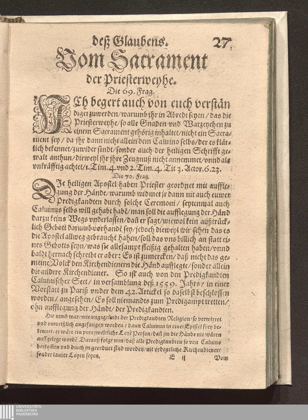 Fragstuck Des Christlichen Glaubens/ an die neuwe Sectische Predigkandten / Durch den Hochgelehrten H. Johann Hayum auß Schotten/ der Societet Jesu Theologum Frantzösisch beschriben/ Vnd folgends durch Sebastian Werro Pfarrherren zu Freyburg in der Eydgnoschafft/ in das Teutsch gebracht/ auch mit dem anderen Theyl vermehret/ vnd alles auff ein neuwes gebessert