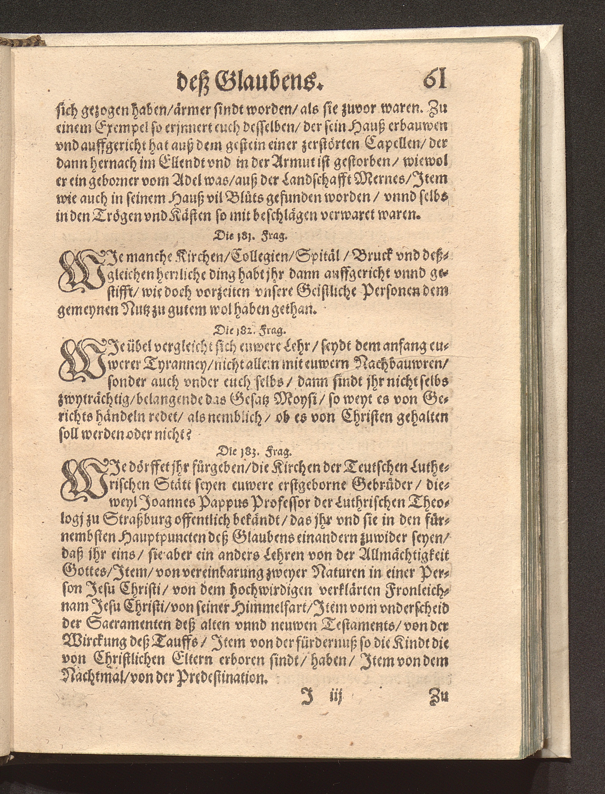 Fragstuck Des Christlichen Glaubens/ an die neuwe Sectische Predigkandten / Durch den Hochgelehrten H. Johann Hayum auß Schotten/ der Societet Jesu Theologum Frantzösisch beschriben/ Vnd folgends durch Sebastian Werro Pfarrherren zu Freyburg in der Eydgnoschafft/ in das Teutsch gebracht/ auch mit dem anderen Theyl vermehret/ vnd alles auff ein neuwes gebessert