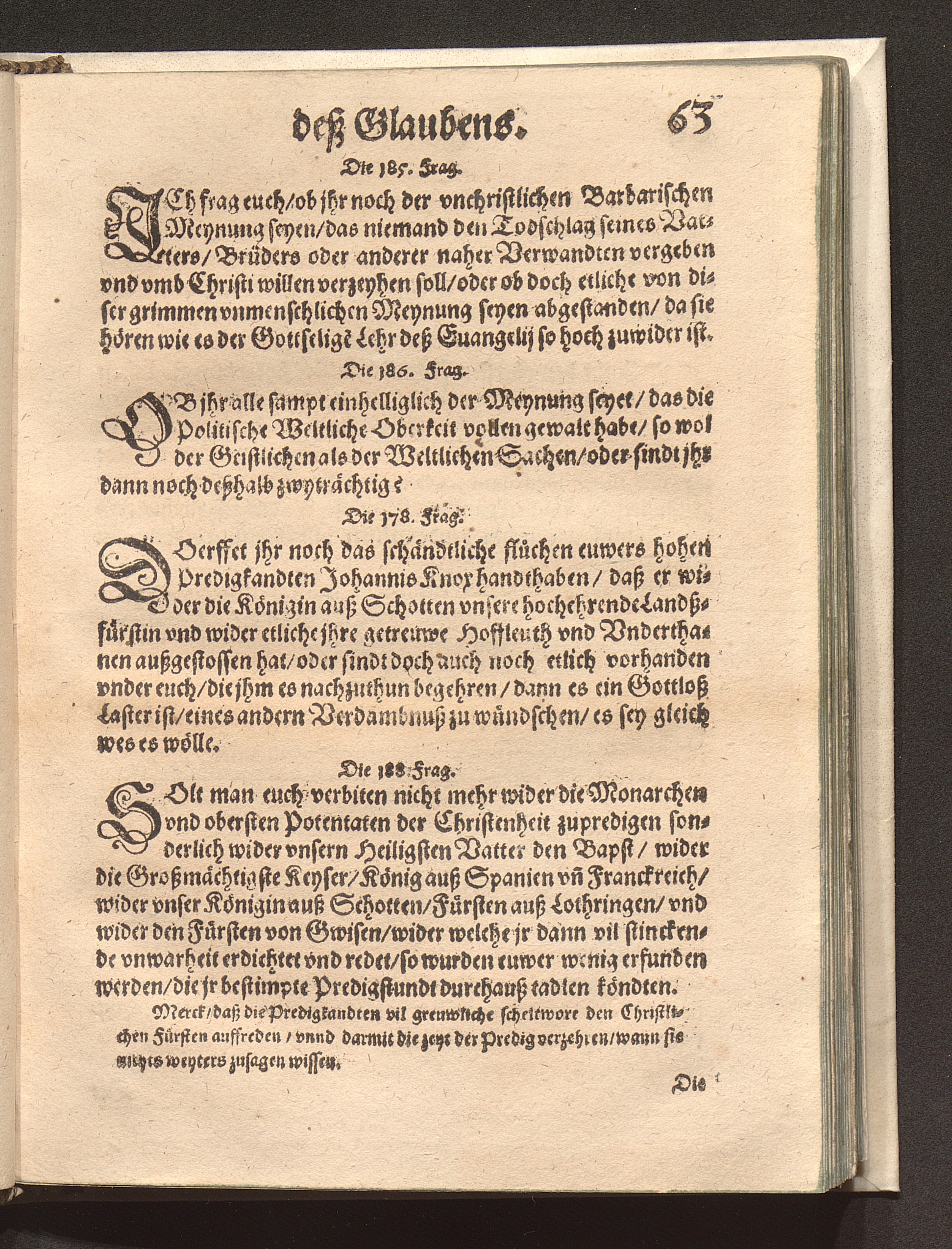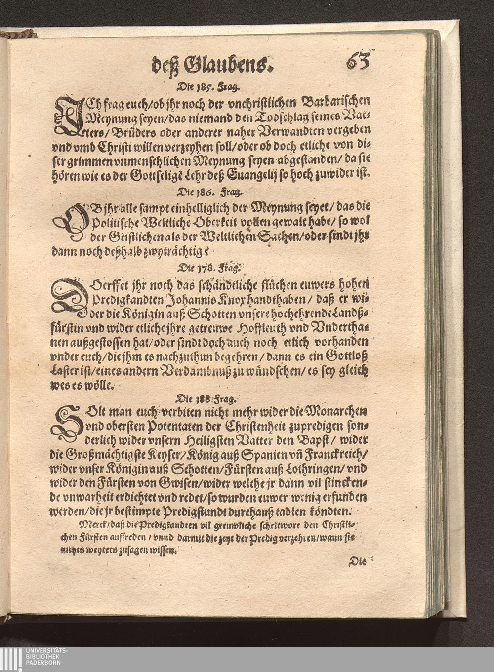 Fragstuck Des Christlichen Glaubens/ an die neuwe Sectische Predigkandten / Durch den Hochgelehrten H. Johann Hayum auß Schotten/ der Societet Jesu Theologum Frantzösisch beschriben/ Vnd folgends durch Sebastian Werro Pfarrherren zu Freyburg in der Eydgnoschafft/ in das Teutsch gebracht/ auch mit dem anderen Theyl vermehret/ vnd alles auff ein neuwes gebessert