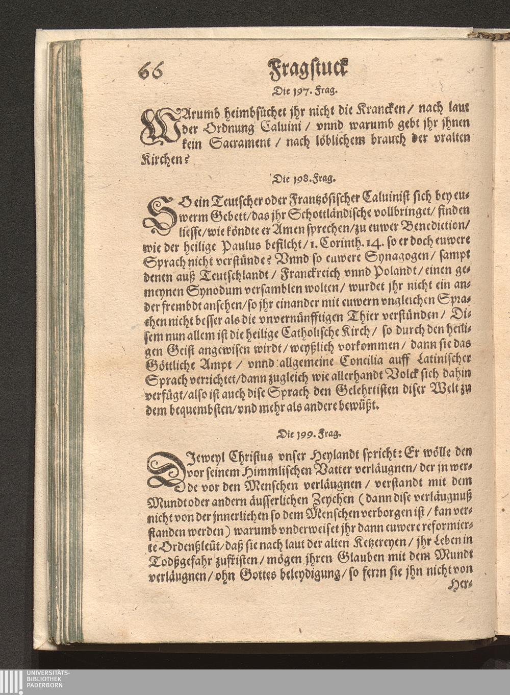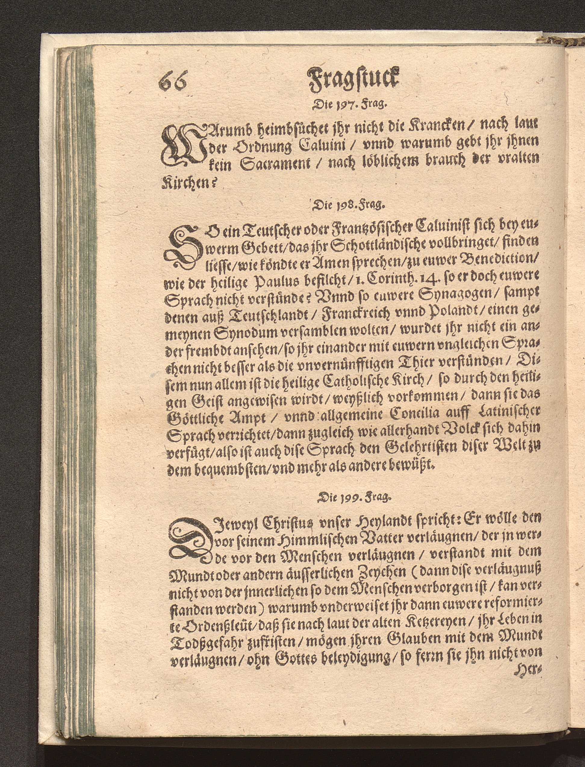 Fragstuck Des Christlichen Glaubens/ an die neuwe Sectische Predigkandten / Durch den Hochgelehrten H. Johann Hayum auß Schotten/ der Societet Jesu Theologum Frantzösisch beschriben/ Vnd folgends durch Sebastian Werro Pfarrherren zu Freyburg in der Eydgnoschafft/ in das Teutsch gebracht/ auch mit dem anderen Theyl vermehret/ vnd alles auff ein neuwes gebessert