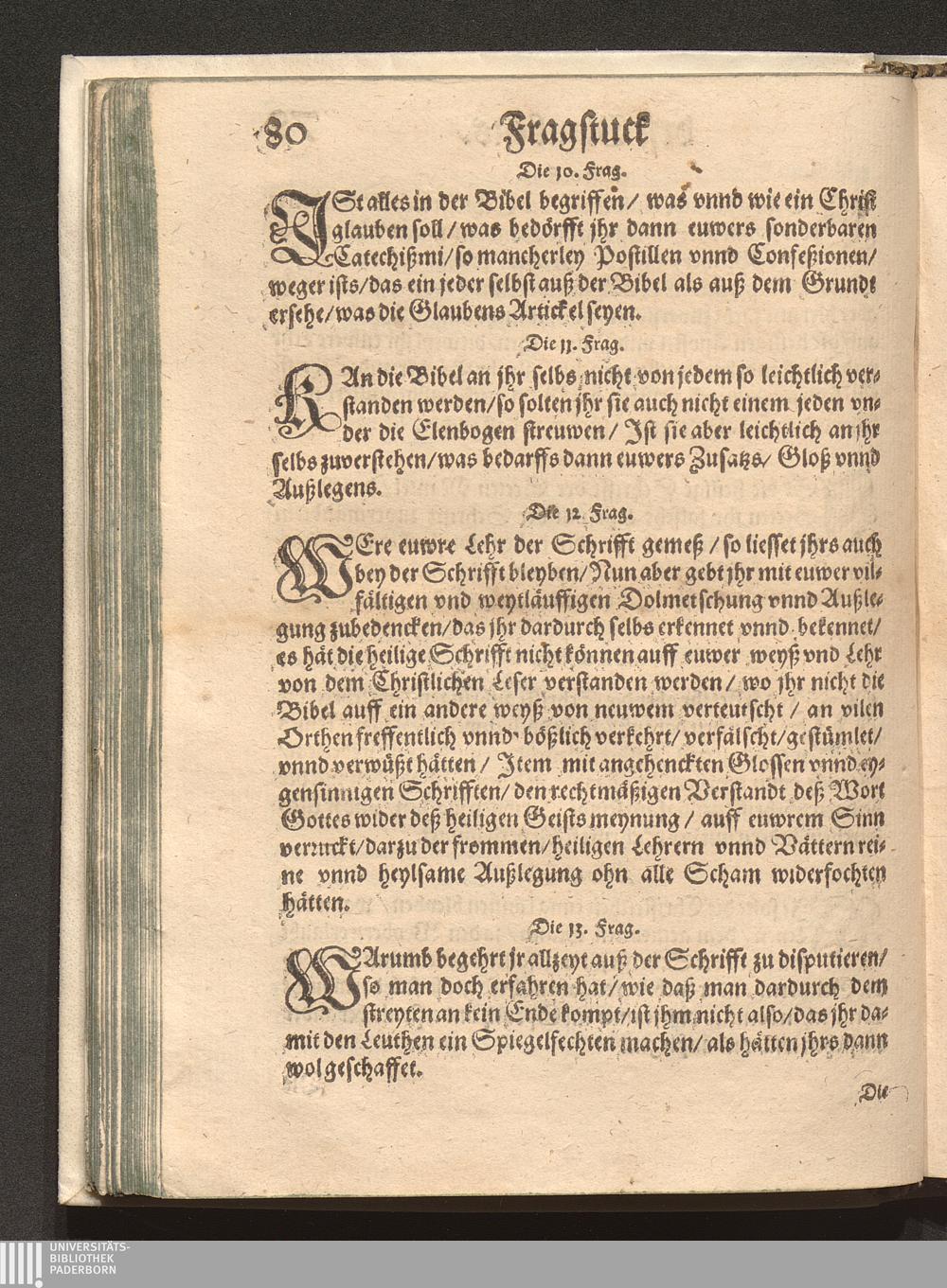 Fragstuck Des Christlichen Glaubens/ an die neuwe Sectische Predigkandten / Durch den Hochgelehrten H. Johann Hayum auß Schotten/ der Societet Jesu Theologum Frantzösisch beschriben/ Vnd folgends durch Sebastian Werro Pfarrherren zu Freyburg in der Eydgnoschafft/ in das Teutsch gebracht/ auch mit dem anderen Theyl vermehret/ vnd alles auff ein neuwes gebessert