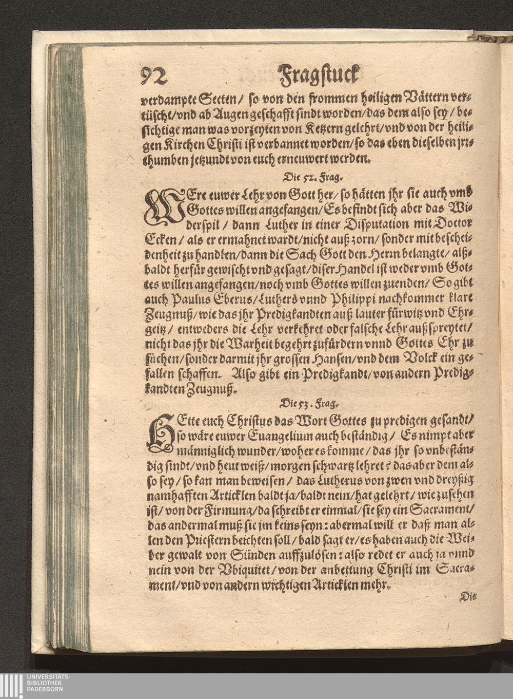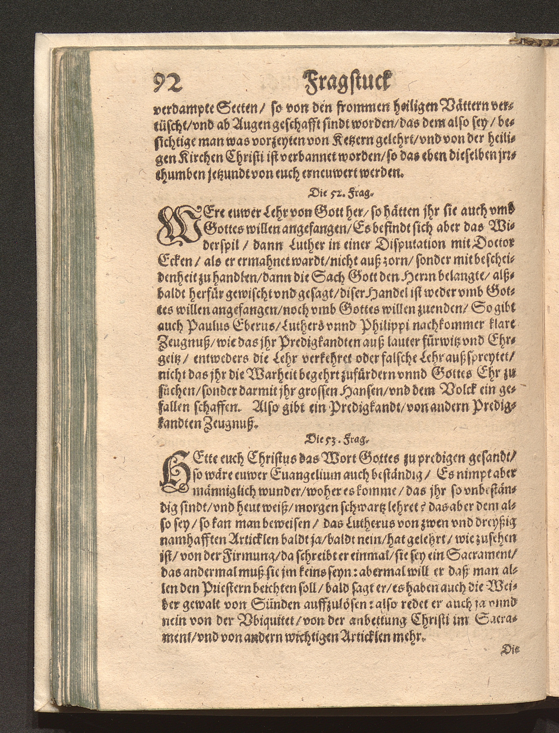 Fragstuck Des Christlichen Glaubens/ an die neuwe Sectische Predigkandten / Durch den Hochgelehrten H. Johann Hayum auß Schotten/ der Societet Jesu Theologum Frantzösisch beschriben/ Vnd folgends durch Sebastian Werro Pfarrherren zu Freyburg in der Eydgnoschafft/ in das Teutsch gebracht/ auch mit dem anderen Theyl vermehret/ vnd alles auff ein neuwes gebessert