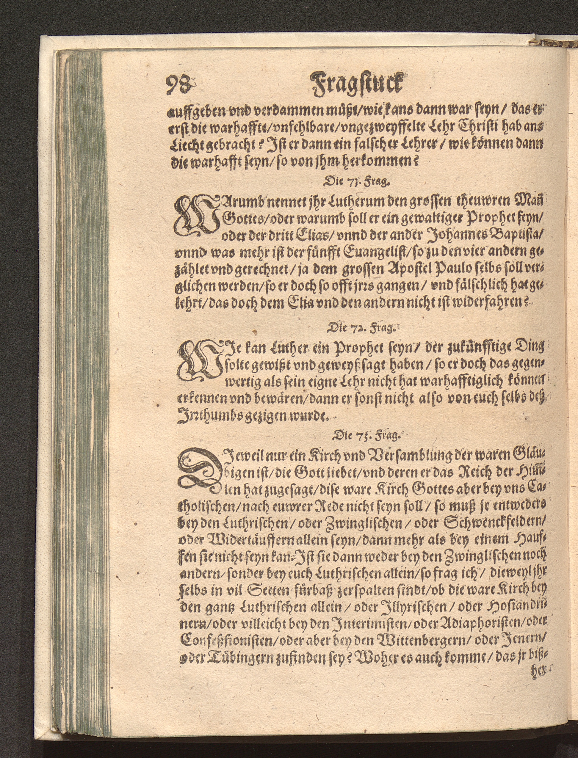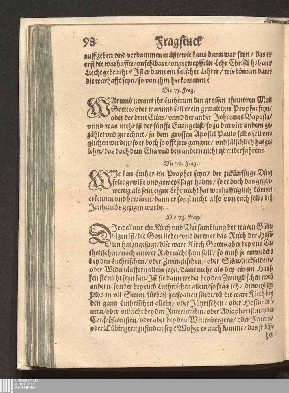 Fragstuck Des Christlichen Glaubens/ an die neuwe Sectische Predigkandten / Durch den Hochgelehrten H. Johann Hayum auß Schotten/ der Societet Jesu Theologum Frantzösisch beschriben/ Vnd folgends durch Sebastian Werro Pfarrherren zu Freyburg in der Eydgnoschafft/ in das Teutsch gebracht/ auch mit dem anderen Theyl vermehret/ vnd alles auff ein neuwes gebessert