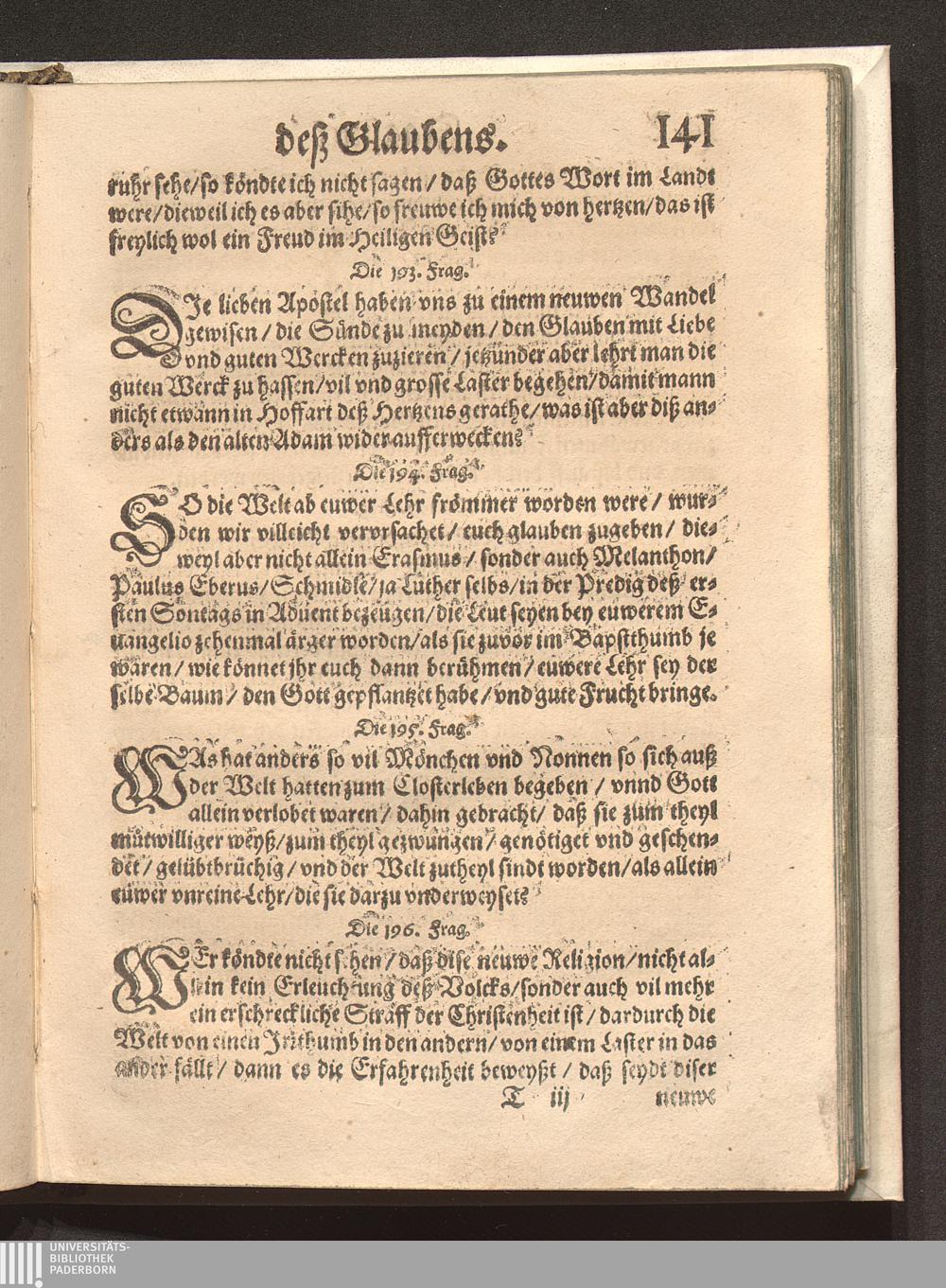 Fragstuck Des Christlichen Glaubens/ an die neuwe Sectische Predigkandten / Durch den Hochgelehrten H. Johann Hayum auß Schotten/ der Societet Jesu Theologum Frantzösisch beschriben/ Vnd folgends durch Sebastian Werro Pfarrherren zu Freyburg in der Eydgnoschafft/ in das Teutsch gebracht/ auch mit dem anderen Theyl vermehret/ vnd alles auff ein neuwes gebessert