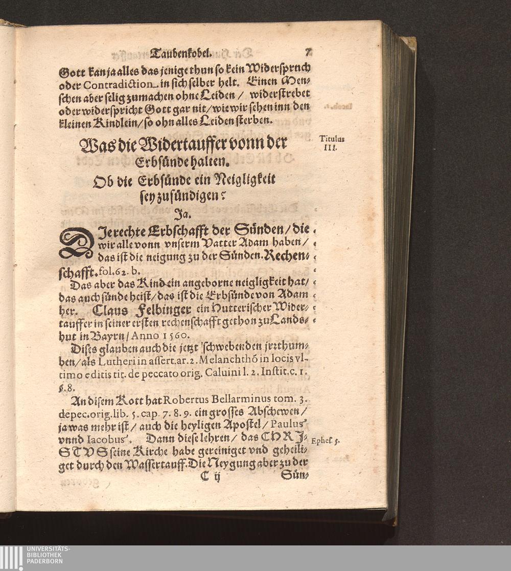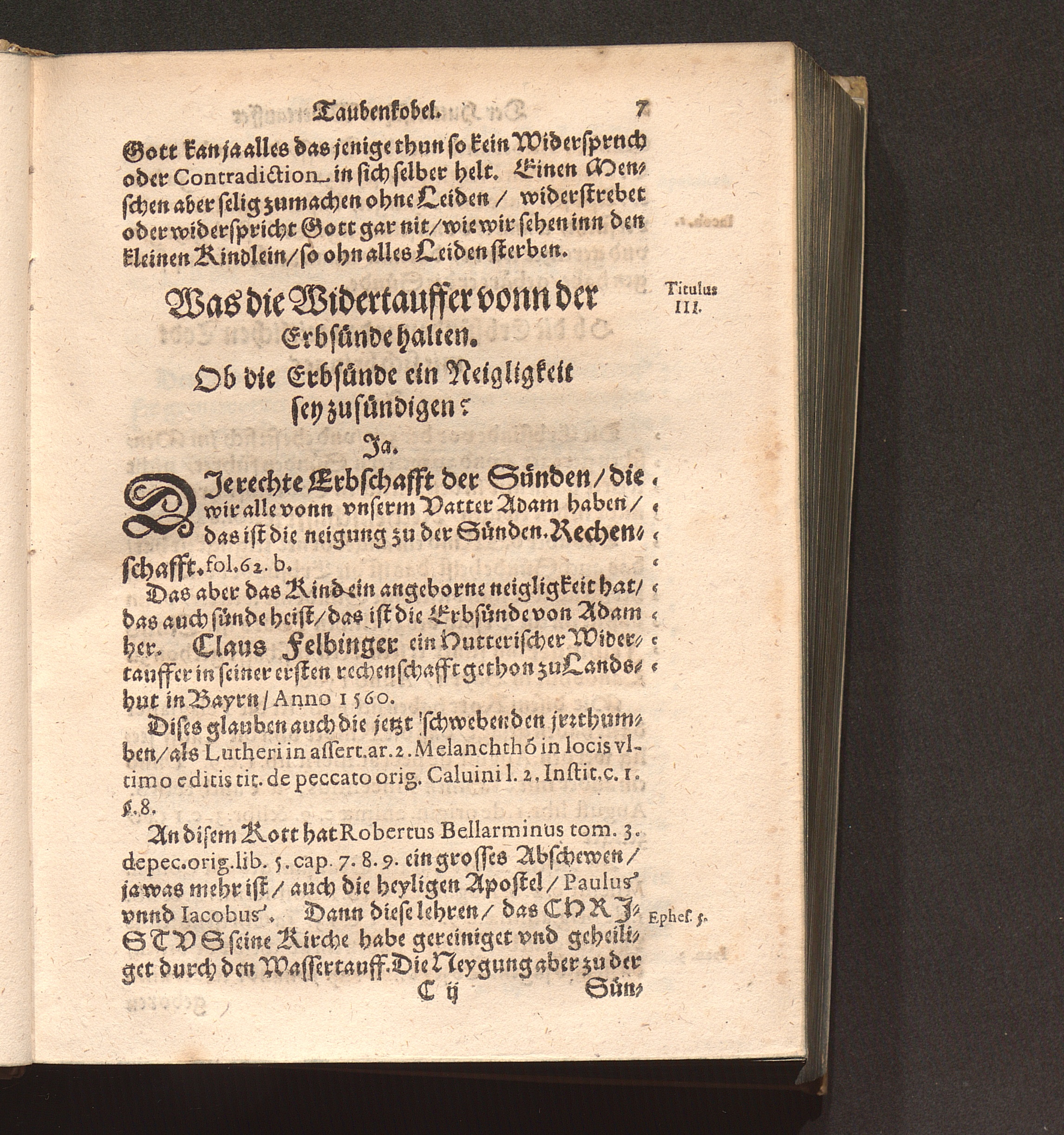 Der Hutterischen Widertauffer Taubenkobel : Jn welchem all jhr Wuest/ Mist/ Kott vnnd Vnflat/ das ist/ jhr falsche/ stinckende/ vnflaetige vnd abscheuliche Lehrn/ was sie nemblich von Gott/ von Christo/ von den H. Sacramenten vnd andern Artickeln deß Christlichen Glaubens halten/ werden erzaehlet/ alle kuertzlich vnd treulich auß jhren eygnen Buechern/ so wol getruckten als geschribnen/ mit Anzeygung deß Orths/ wo ein jedliche zufinden/ verfasset. Auch deß grossen Taubers deß Jacob Hutters Leben/ von welchem sich die Widertauffer Hutterisch nennen/ angehenckt / Durch Christophorvm Andream Fischer D. Pfarrherrn zu Velsperg