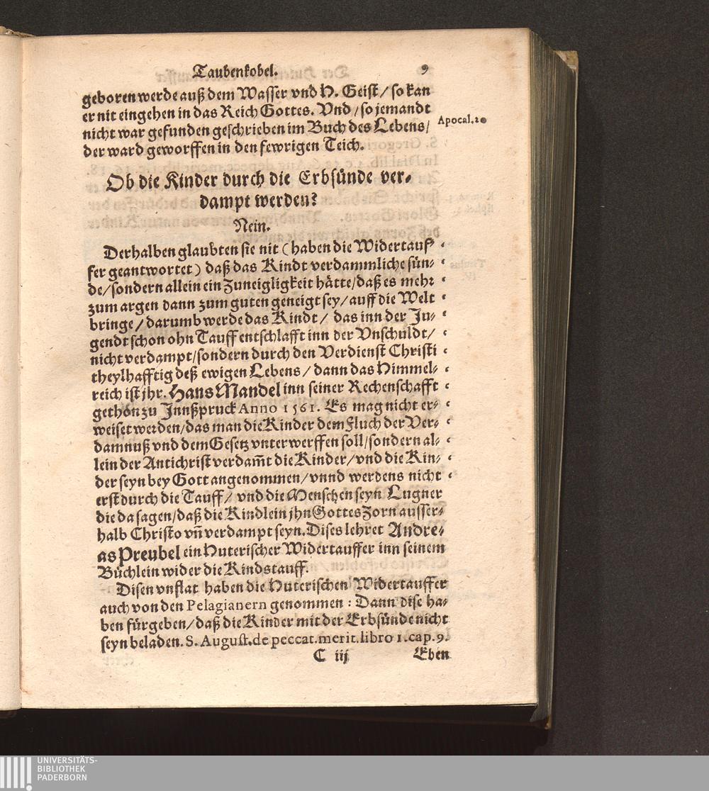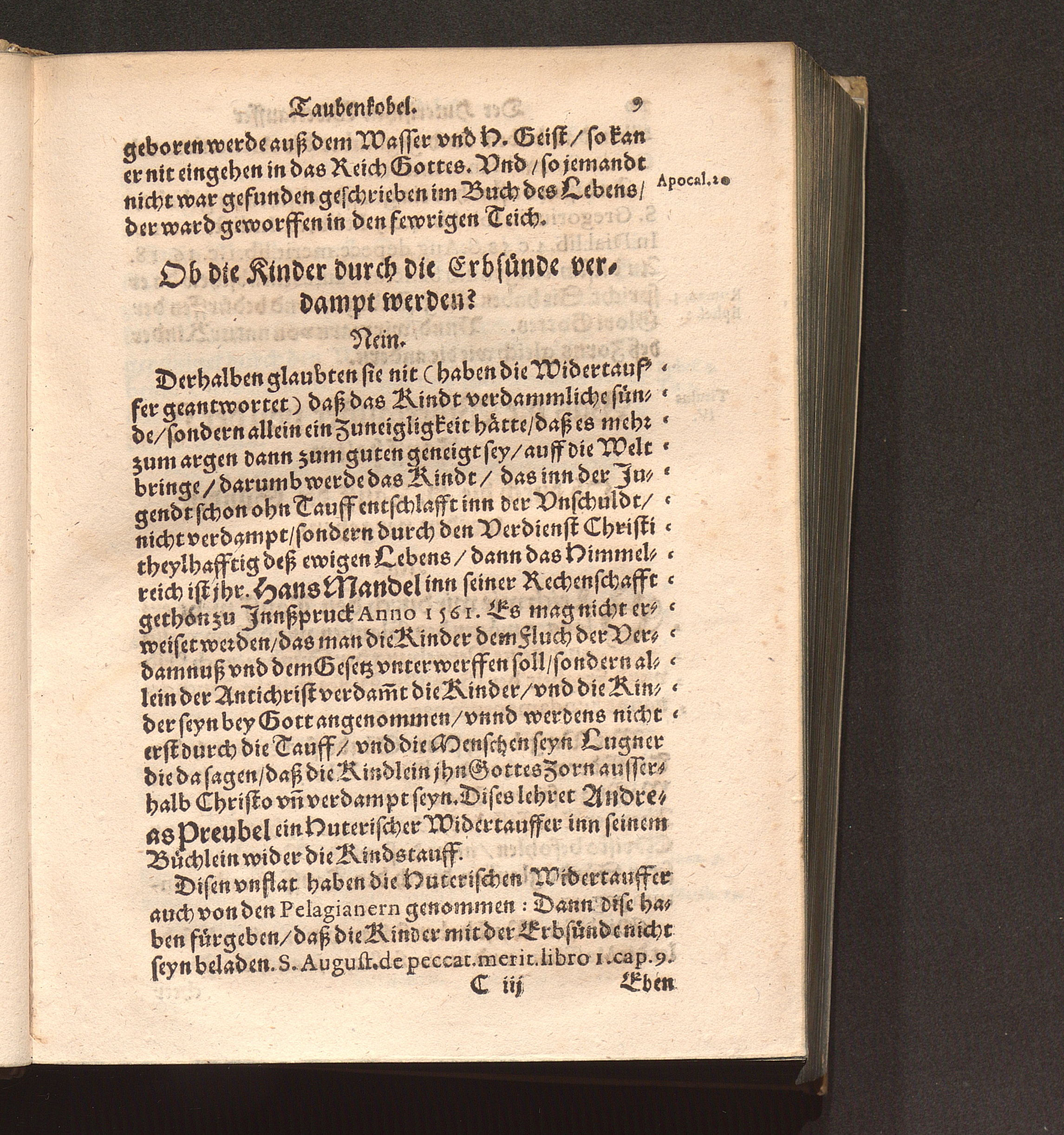 Der Hutterischen Widertauffer Taubenkobel : Jn welchem all jhr Wuest/ Mist/ Kott vnnd Vnflat/ das ist/ jhr falsche/ stinckende/ vnflaetige vnd abscheuliche Lehrn/ was sie nemblich von Gott/ von Christo/ von den H. Sacramenten vnd andern Artickeln deß Christlichen Glaubens halten/ werden erzaehlet/ alle kuertzlich vnd treulich auß jhren eygnen Buechern/ so wol getruckten als geschribnen/ mit Anzeygung deß Orths/ wo ein jedliche zufinden/ verfasset. Auch deß grossen Taubers deß Jacob Hutters Leben/ von welchem sich die Widertauffer Hutterisch nennen/ angehenckt / Durch Christophorvm Andream Fischer D. Pfarrherrn zu Velsperg