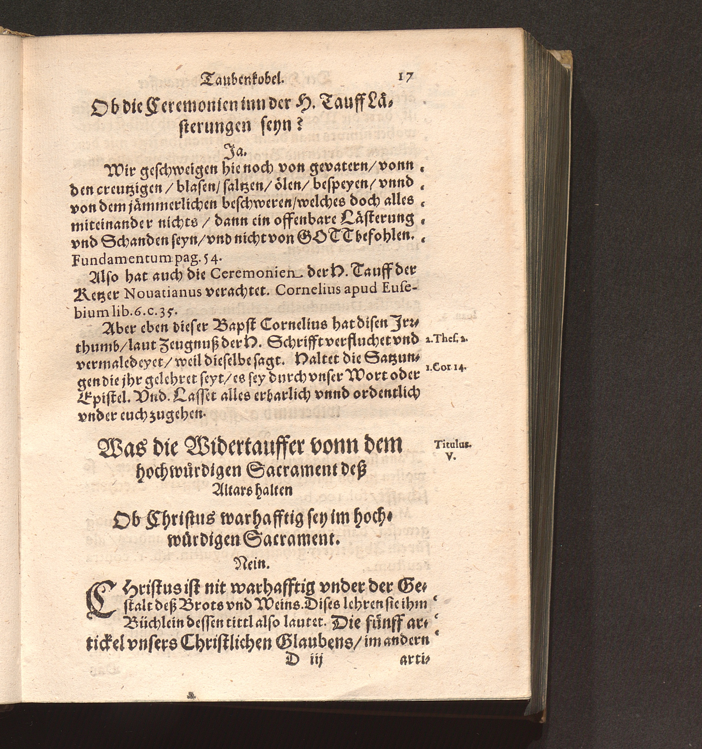 Der Hutterischen Widertauffer Taubenkobel : Jn welchem all jhr Wuest/ Mist/ Kott vnnd Vnflat/ das ist/ jhr falsche/ stinckende/ vnflaetige vnd abscheuliche Lehrn/ was sie nemblich von Gott/ von Christo/ von den H. Sacramenten vnd andern Artickeln deß Christlichen Glaubens halten/ werden erzaehlet/ alle kuertzlich vnd treulich auß jhren eygnen Buechern/ so wol getruckten als geschribnen/ mit Anzeygung deß Orths/ wo ein jedliche zufinden/ verfasset. Auch deß grossen Taubers deß Jacob Hutters Leben/ von welchem sich die Widertauffer Hutterisch nennen/ angehenckt / Durch Christophorvm Andream Fischer D. Pfarrherrn zu Velsperg