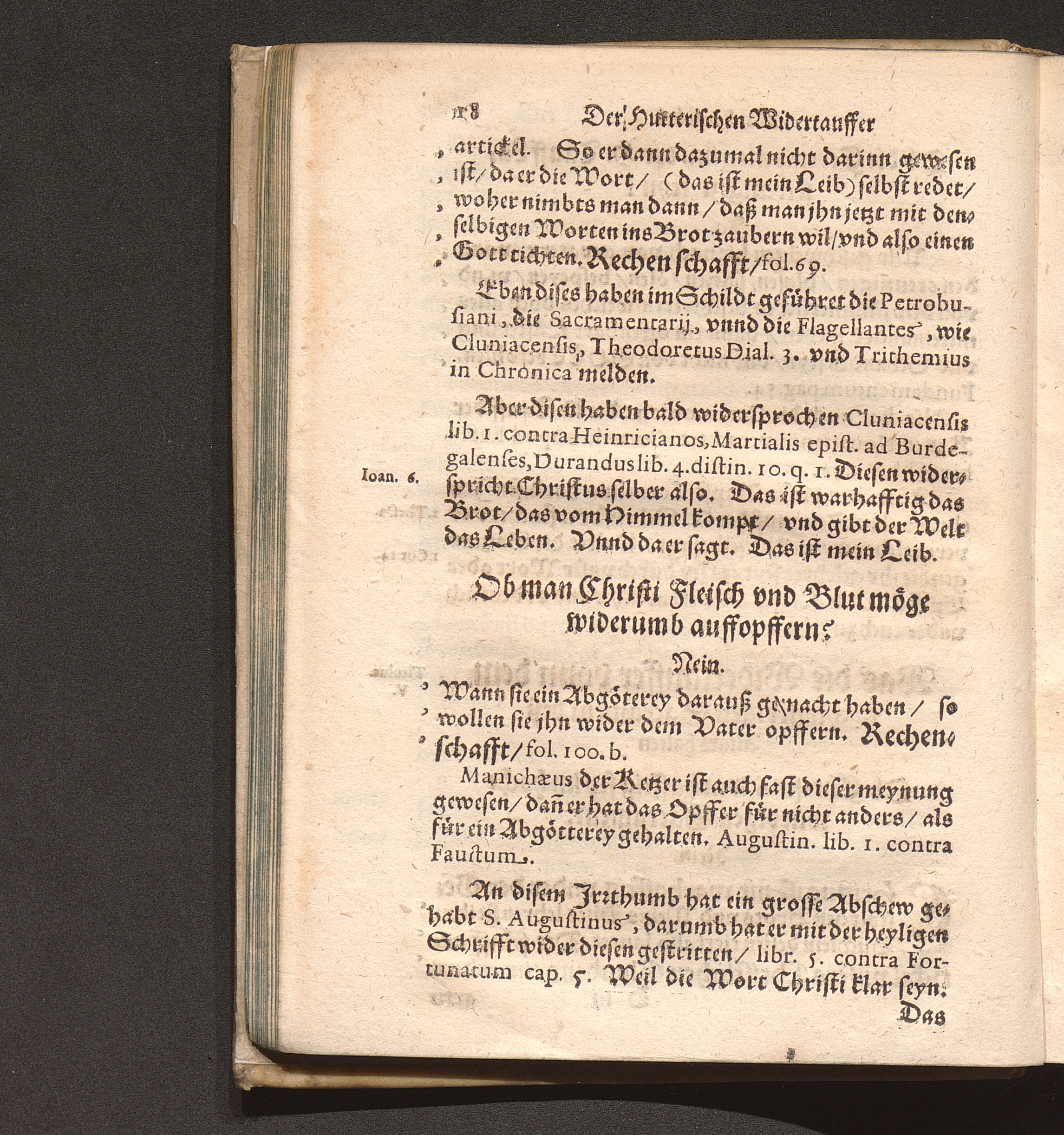 Der Hutterischen Widertauffer Taubenkobel : Jn welchem all jhr Wuest/ Mist/ Kott vnnd Vnflat/ das ist/ jhr falsche/ stinckende/ vnflaetige vnd abscheuliche Lehrn/ was sie nemblich von Gott/ von Christo/ von den H. Sacramenten vnd andern Artickeln deß Christlichen Glaubens halten/ werden erzaehlet/ alle kuertzlich vnd treulich auß jhren eygnen Buechern/ so wol getruckten als geschribnen/ mit Anzeygung deß Orths/ wo ein jedliche zufinden/ verfasset. Auch deß grossen Taubers deß Jacob Hutters Leben/ von welchem sich die Widertauffer Hutterisch nennen/ angehenckt / Durch Christophorvm Andream Fischer D. Pfarrherrn zu Velsperg