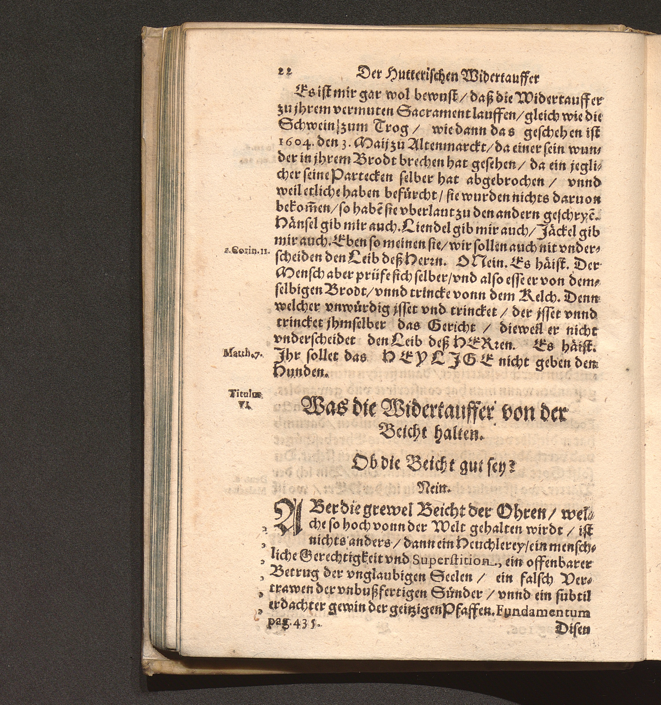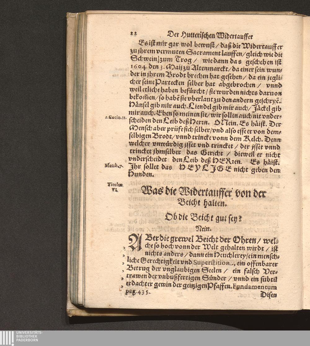 Der Hutterischen Widertauffer Taubenkobel : Jn welchem all jhr Wuest/ Mist/ Kott vnnd Vnflat/ das ist/ jhr falsche/ stinckende/ vnflaetige vnd abscheuliche Lehrn/ was sie nemblich von Gott/ von Christo/ von den H. Sacramenten vnd andern Artickeln deß Christlichen Glaubens halten/ werden erzaehlet/ alle kuertzlich vnd treulich auß jhren eygnen Buechern/ so wol getruckten als geschribnen/ mit Anzeygung deß Orths/ wo ein jedliche zufinden/ verfasset. Auch deß grossen Taubers deß Jacob Hutters Leben/ von welchem sich die Widertauffer Hutterisch nennen/ angehenckt / Durch Christophorvm Andream Fischer D. Pfarrherrn zu Velsperg