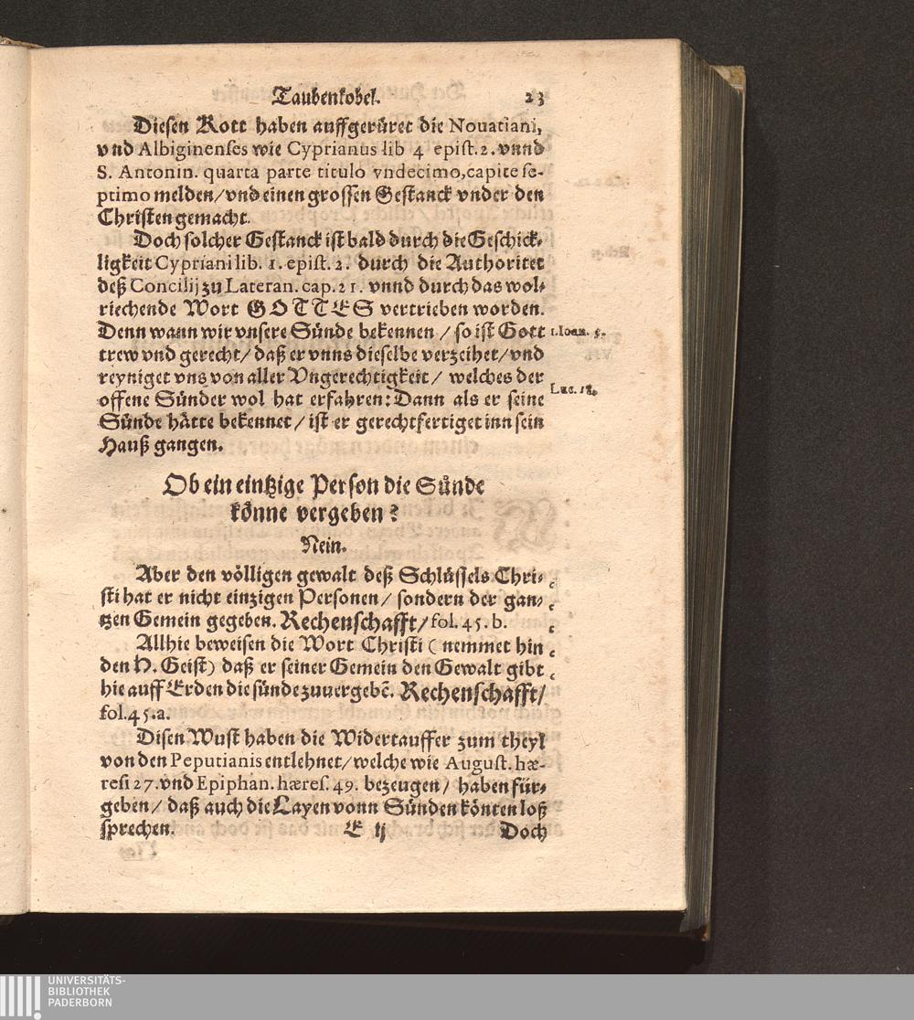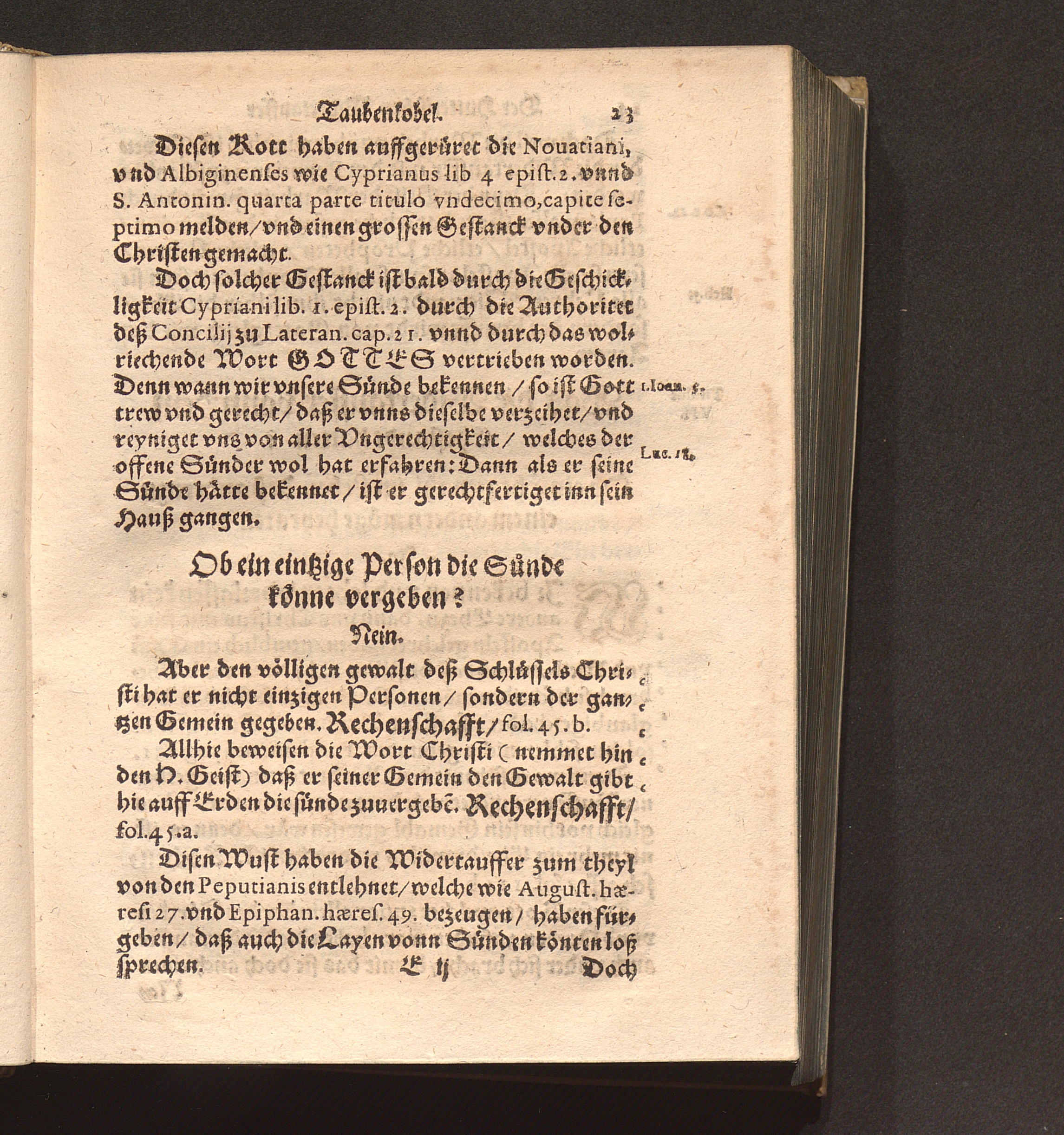 Der Hutterischen Widertauffer Taubenkobel : Jn welchem all jhr Wuest/ Mist/ Kott vnnd Vnflat/ das ist/ jhr falsche/ stinckende/ vnflaetige vnd abscheuliche Lehrn/ was sie nemblich von Gott/ von Christo/ von den H. Sacramenten vnd andern Artickeln deß Christlichen Glaubens halten/ werden erzaehlet/ alle kuertzlich vnd treulich auß jhren eygnen Buechern/ so wol getruckten als geschribnen/ mit Anzeygung deß Orths/ wo ein jedliche zufinden/ verfasset. Auch deß grossen Taubers deß Jacob Hutters Leben/ von welchem sich die Widertauffer Hutterisch nennen/ angehenckt / Durch Christophorvm Andream Fischer D. Pfarrherrn zu Velsperg