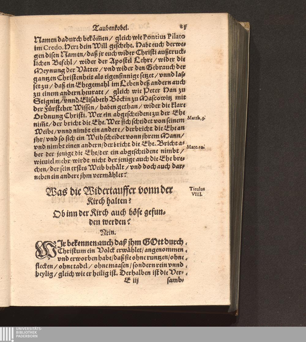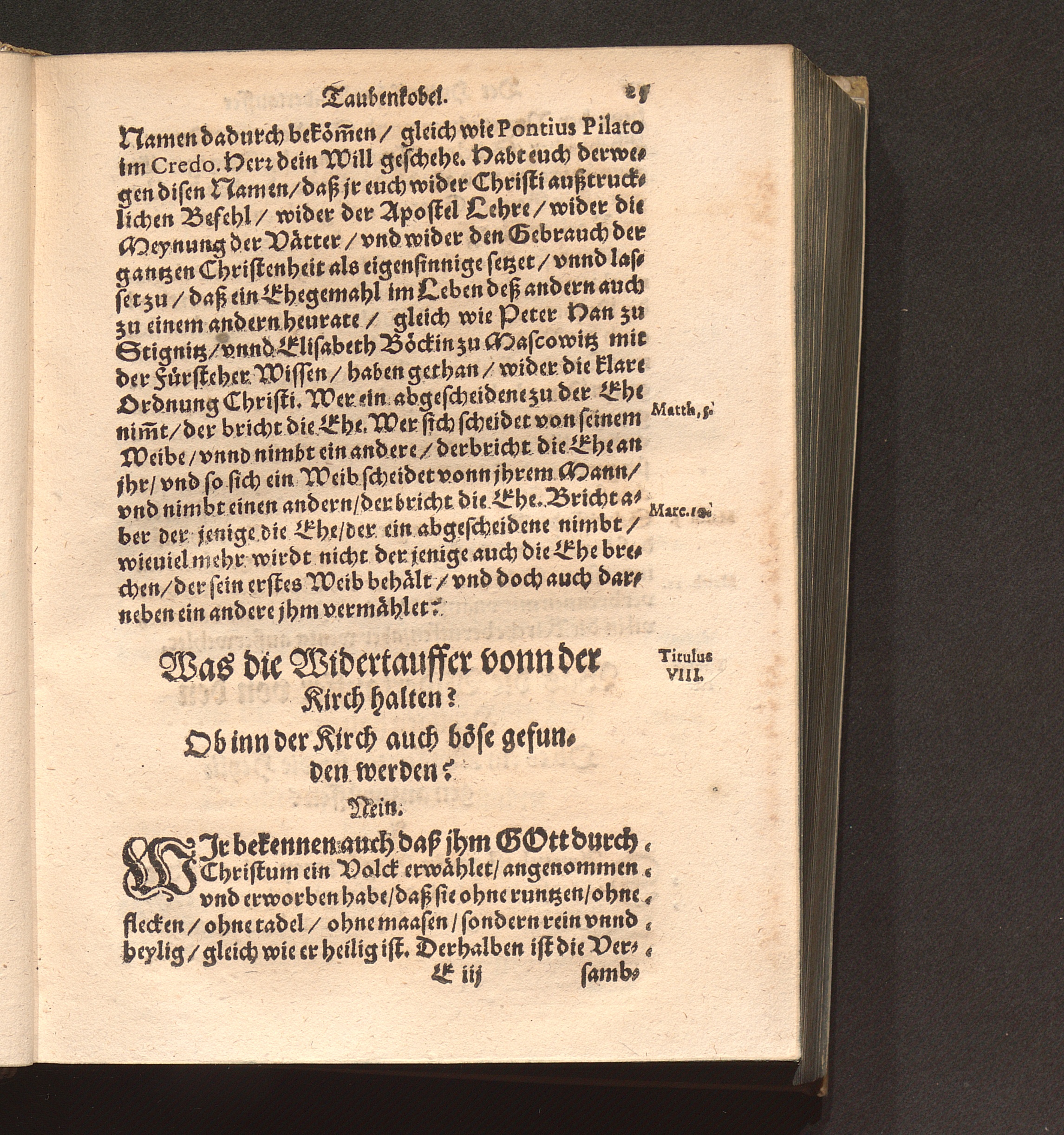 Der Hutterischen Widertauffer Taubenkobel : Jn welchem all jhr Wuest/ Mist/ Kott vnnd Vnflat/ das ist/ jhr falsche/ stinckende/ vnflaetige vnd abscheuliche Lehrn/ was sie nemblich von Gott/ von Christo/ von den H. Sacramenten vnd andern Artickeln deß Christlichen Glaubens halten/ werden erzaehlet/ alle kuertzlich vnd treulich auß jhren eygnen Buechern/ so wol getruckten als geschribnen/ mit Anzeygung deß Orths/ wo ein jedliche zufinden/ verfasset. Auch deß grossen Taubers deß Jacob Hutters Leben/ von welchem sich die Widertauffer Hutterisch nennen/ angehenckt / Durch Christophorvm Andream Fischer D. Pfarrherrn zu Velsperg