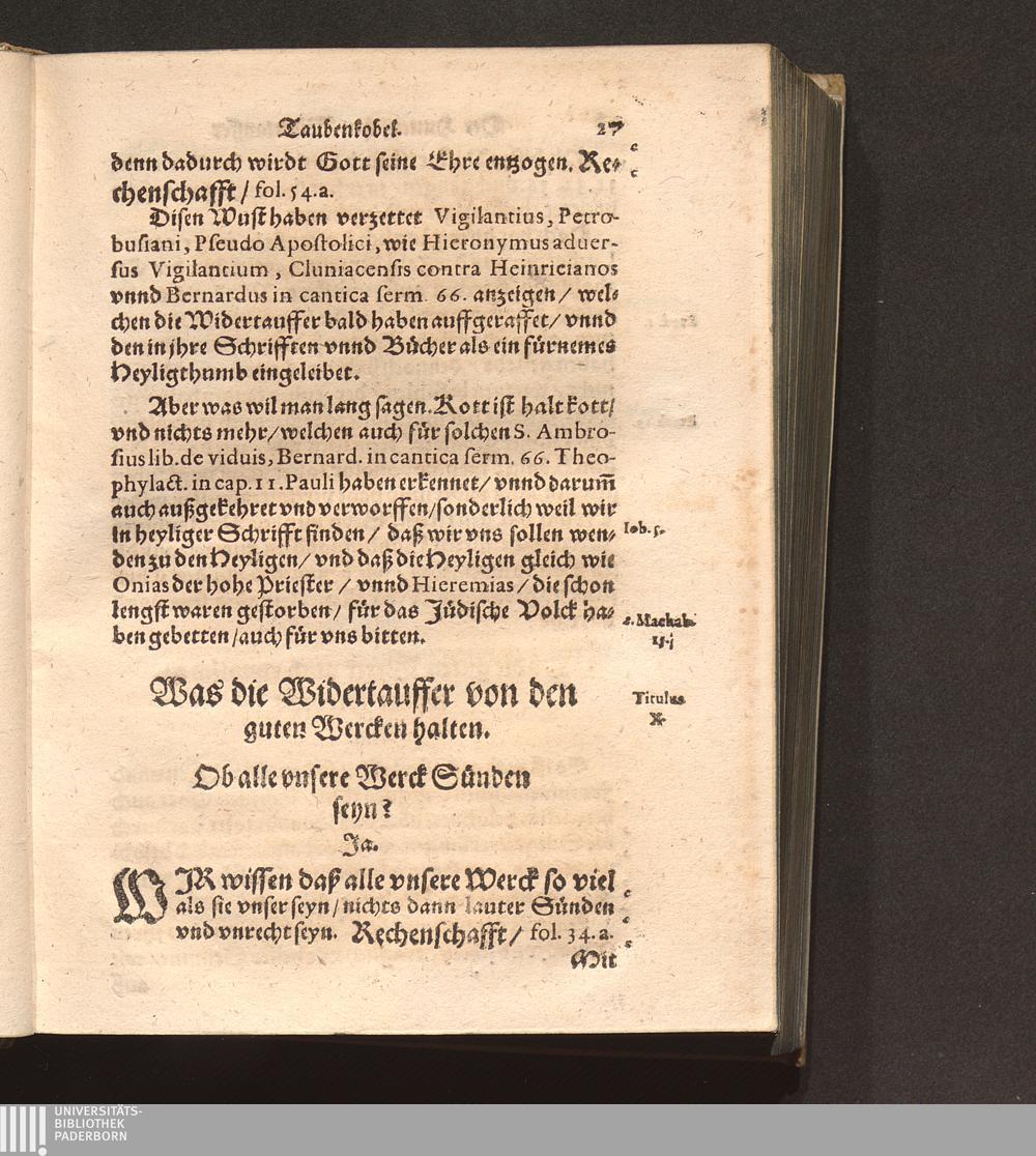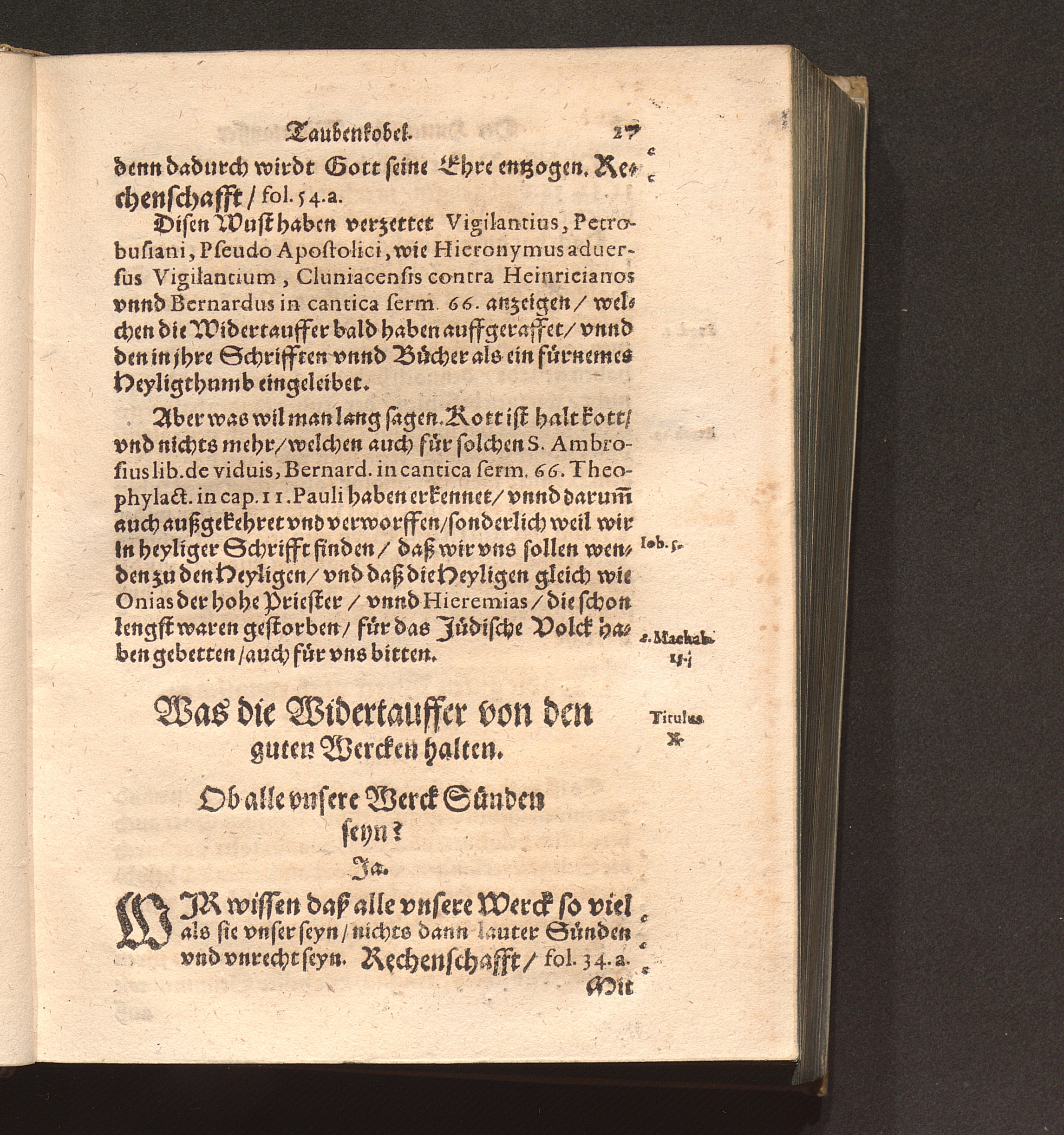 Der Hutterischen Widertauffer Taubenkobel : Jn welchem all jhr Wuest/ Mist/ Kott vnnd Vnflat/ das ist/ jhr falsche/ stinckende/ vnflaetige vnd abscheuliche Lehrn/ was sie nemblich von Gott/ von Christo/ von den H. Sacramenten vnd andern Artickeln deß Christlichen Glaubens halten/ werden erzaehlet/ alle kuertzlich vnd treulich auß jhren eygnen Buechern/ so wol getruckten als geschribnen/ mit Anzeygung deß Orths/ wo ein jedliche zufinden/ verfasset. Auch deß grossen Taubers deß Jacob Hutters Leben/ von welchem sich die Widertauffer Hutterisch nennen/ angehenckt / Durch Christophorvm Andream Fischer D. Pfarrherrn zu Velsperg
