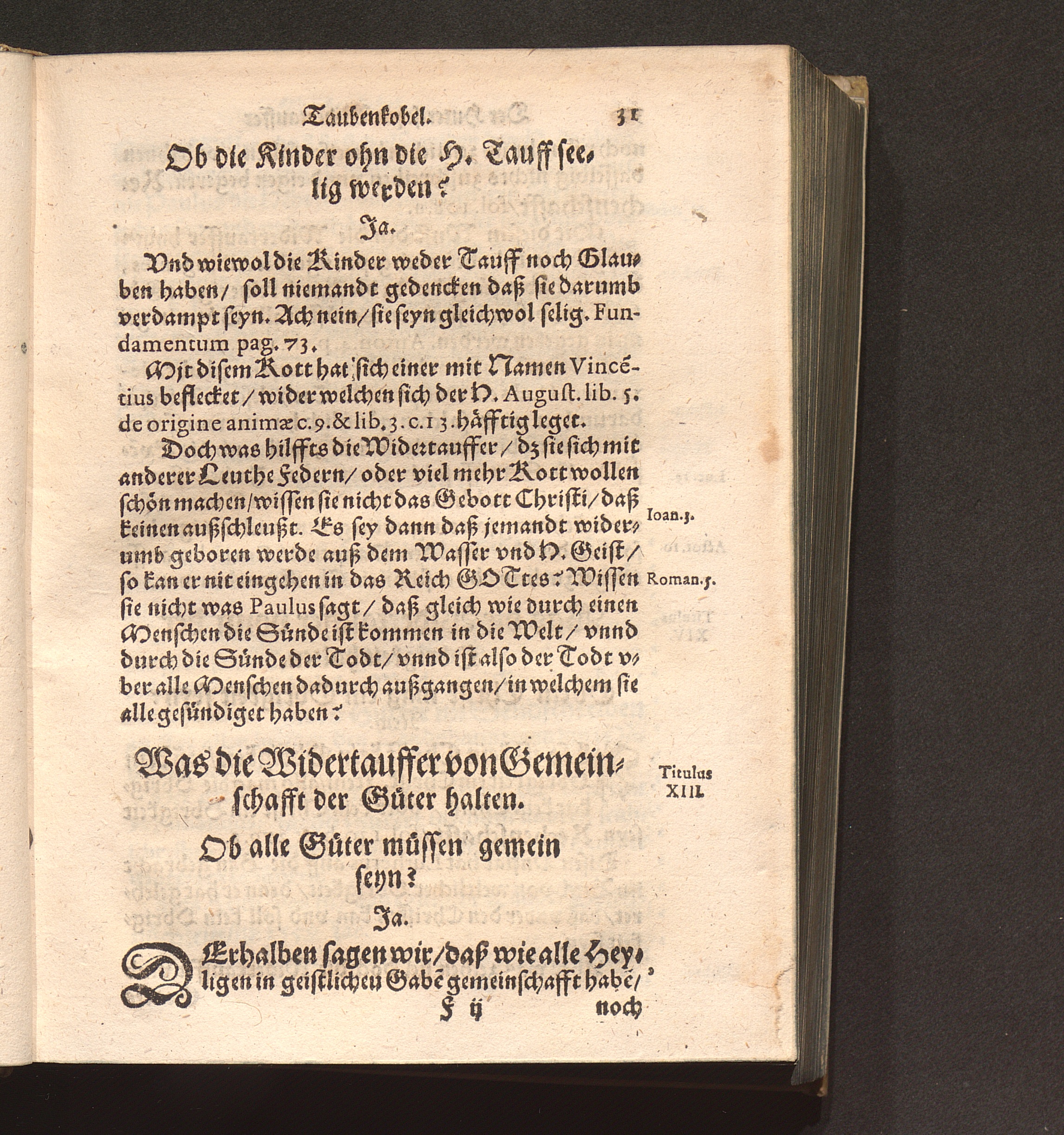 Der Hutterischen Widertauffer Taubenkobel : Jn welchem all jhr Wuest/ Mist/ Kott vnnd Vnflat/ das ist/ jhr falsche/ stinckende/ vnflaetige vnd abscheuliche Lehrn/ was sie nemblich von Gott/ von Christo/ von den H. Sacramenten vnd andern Artickeln deß Christlichen Glaubens halten/ werden erzaehlet/ alle kuertzlich vnd treulich auß jhren eygnen Buechern/ so wol getruckten als geschribnen/ mit Anzeygung deß Orths/ wo ein jedliche zufinden/ verfasset. Auch deß grossen Taubers deß Jacob Hutters Leben/ von welchem sich die Widertauffer Hutterisch nennen/ angehenckt / Durch Christophorvm Andream Fischer D. Pfarrherrn zu Velsperg