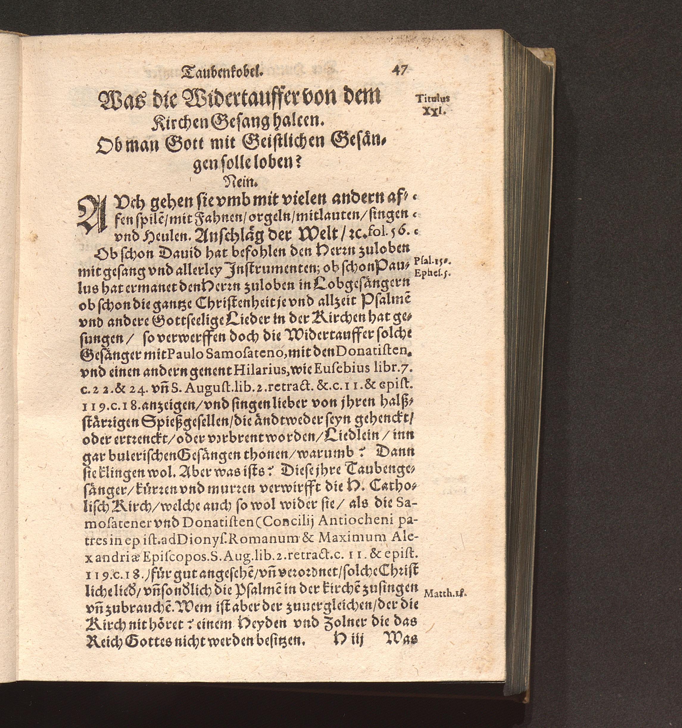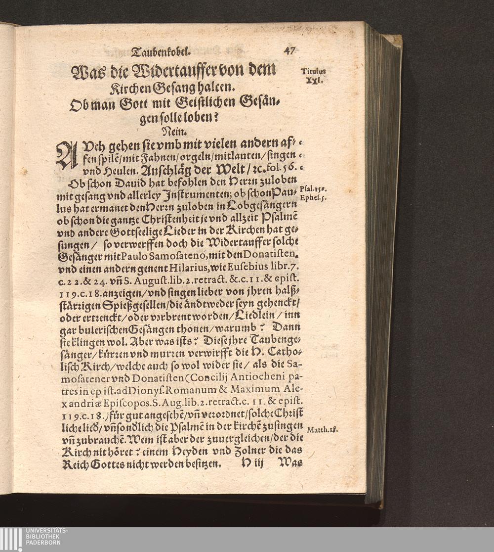 Der Hutterischen Widertauffer Taubenkobel : Jn welchem all jhr Wuest/ Mist/ Kott vnnd Vnflat/ das ist/ jhr falsche/ stinckende/ vnflaetige vnd abscheuliche Lehrn/ was sie nemblich von Gott/ von Christo/ von den H. Sacramenten vnd andern Artickeln deß Christlichen Glaubens halten/ werden erzaehlet/ alle kuertzlich vnd treulich auß jhren eygnen Buechern/ so wol getruckten als geschribnen/ mit Anzeygung deß Orths/ wo ein jedliche zufinden/ verfasset. Auch deß grossen Taubers deß Jacob Hutters Leben/ von welchem sich die Widertauffer Hutterisch nennen/ angehenckt / Durch Christophorvm Andream Fischer D. Pfarrherrn zu Velsperg