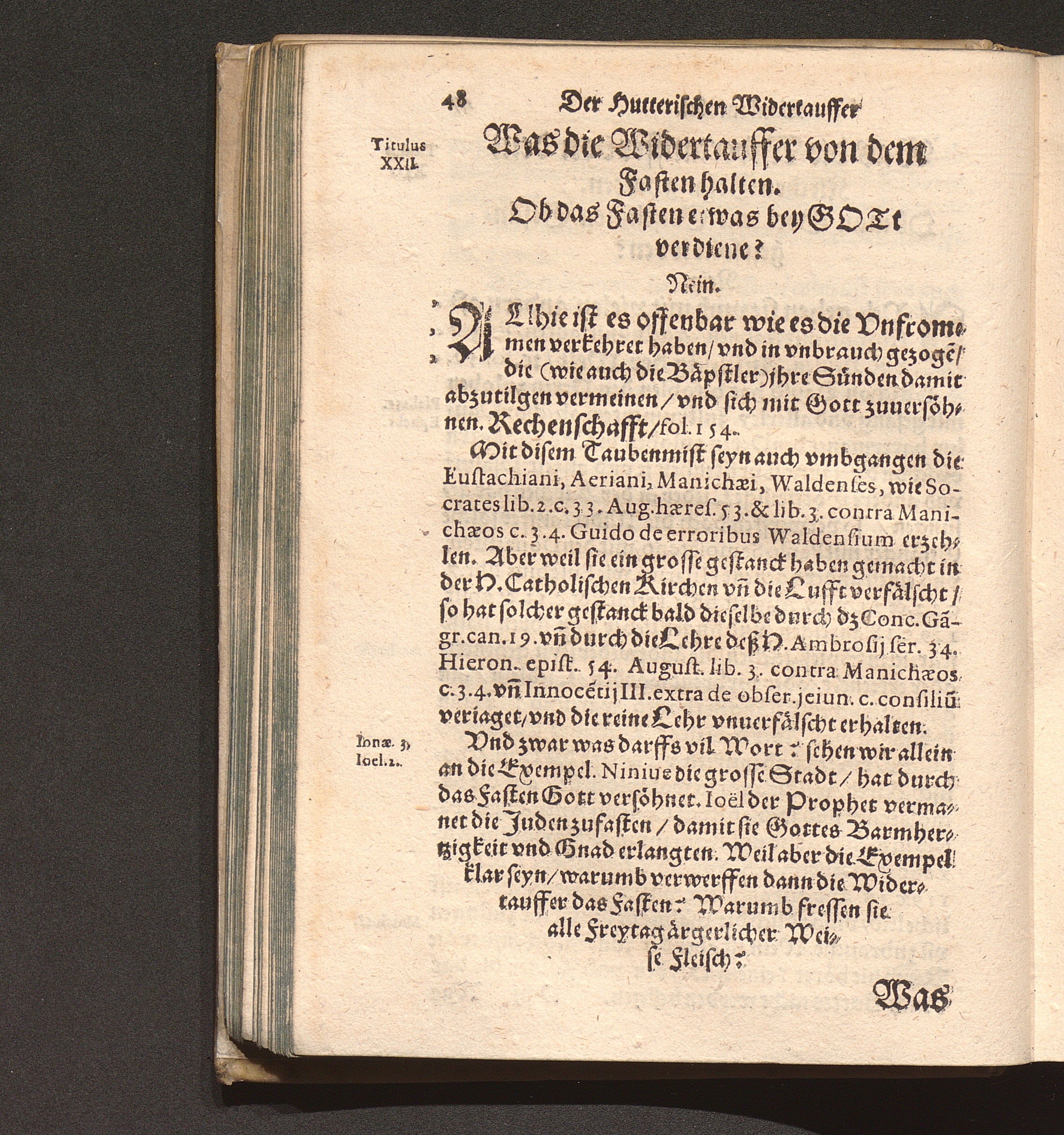 Der Hutterischen Widertauffer Taubenkobel : Jn welchem all jhr Wuest/ Mist/ Kott vnnd Vnflat/ das ist/ jhr falsche/ stinckende/ vnflaetige vnd abscheuliche Lehrn/ was sie nemblich von Gott/ von Christo/ von den H. Sacramenten vnd andern Artickeln deß Christlichen Glaubens halten/ werden erzaehlet/ alle kuertzlich vnd treulich auß jhren eygnen Buechern/ so wol getruckten als geschribnen/ mit Anzeygung deß Orths/ wo ein jedliche zufinden/ verfasset. Auch deß grossen Taubers deß Jacob Hutters Leben/ von welchem sich die Widertauffer Hutterisch nennen/ angehenckt / Durch Christophorvm Andream Fischer D. Pfarrherrn zu Velsperg