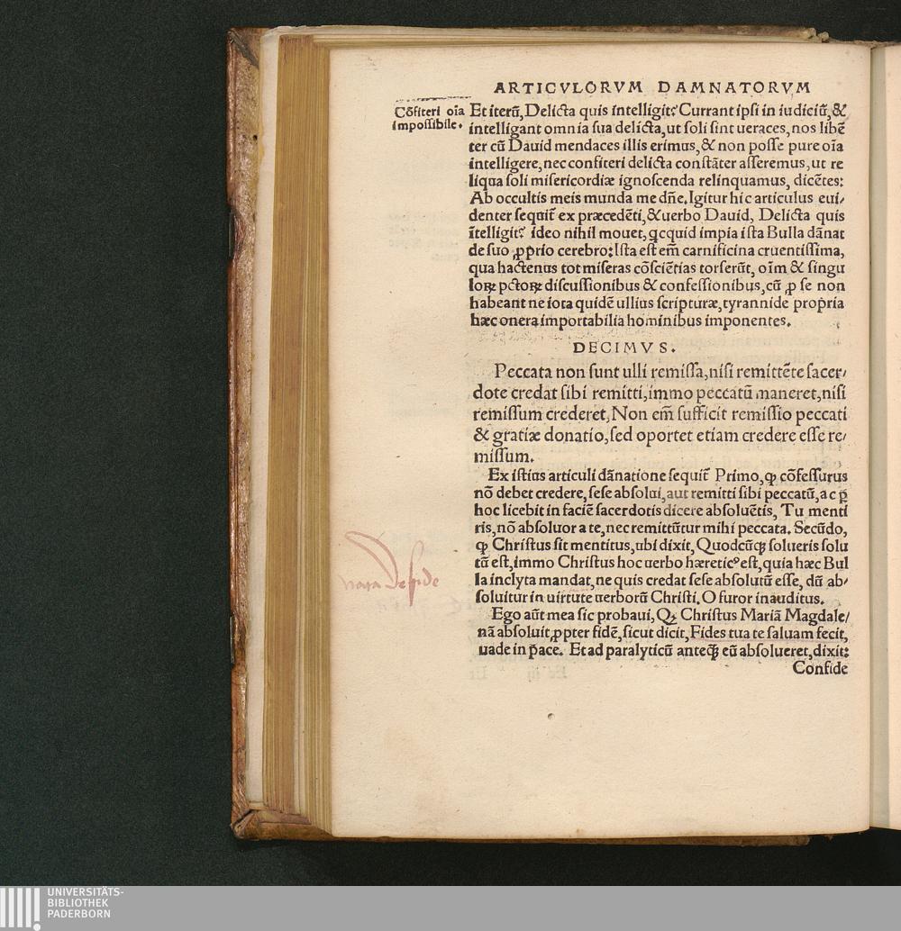 Decimvs. Peccata non sunt ulli remissa, nisi remitte[n]te sacerdote credat sibi remitti,[...]