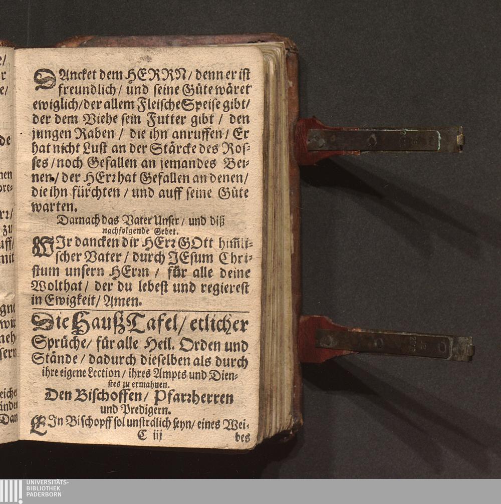 Die HaußTafel/ etlicher Sprüche/ für alle Heil. Orden und Stände/ dadurch dieselben[...]