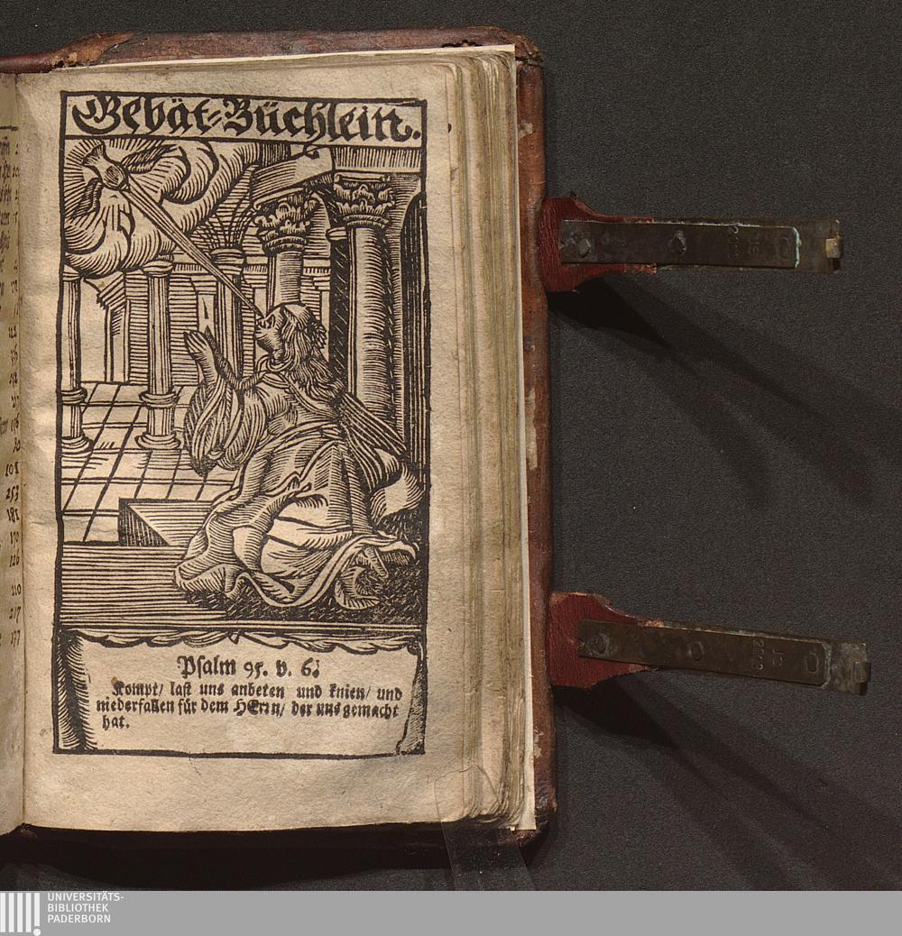 Ein schönes und sehr nützliches Gebetbuch/ Für alle Noht und Stände der gantzen Christenheit/ sampt außerlesenen Haupt-Sprüchen des Alten und Neuen Testaments/ auff alle Tage in der Wochen zu sprechen verordnet : Mit schönen Gebeten für die/ so zum Sacrament gehen wollen