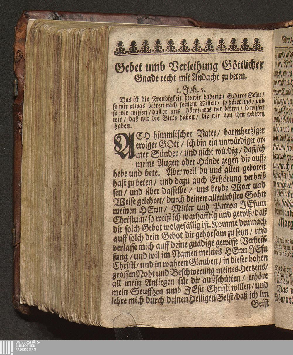 Ein schönes und sehr nützliches Gebetbuch/ Für alle Noht und Stände der gantzen Christenheit/ sampt außerlesenen Haupt-Sprüchen des Alten und Neuen Testaments/ auff alle Tage in der Wochen zu sprechen verordnet : Mit schönen Gebeten für die/ so zum Sacrament gehen wollen