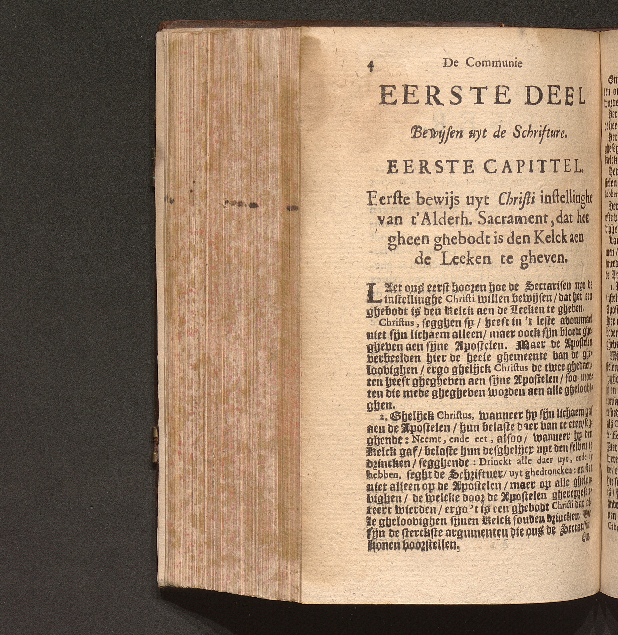 Eerste Capittel. Eerste bewijs uyt Christi instellinghe van t'Alderh. Sacrament, dat het gheen ghebodt is den Kelck aen de Leeken te gheven.