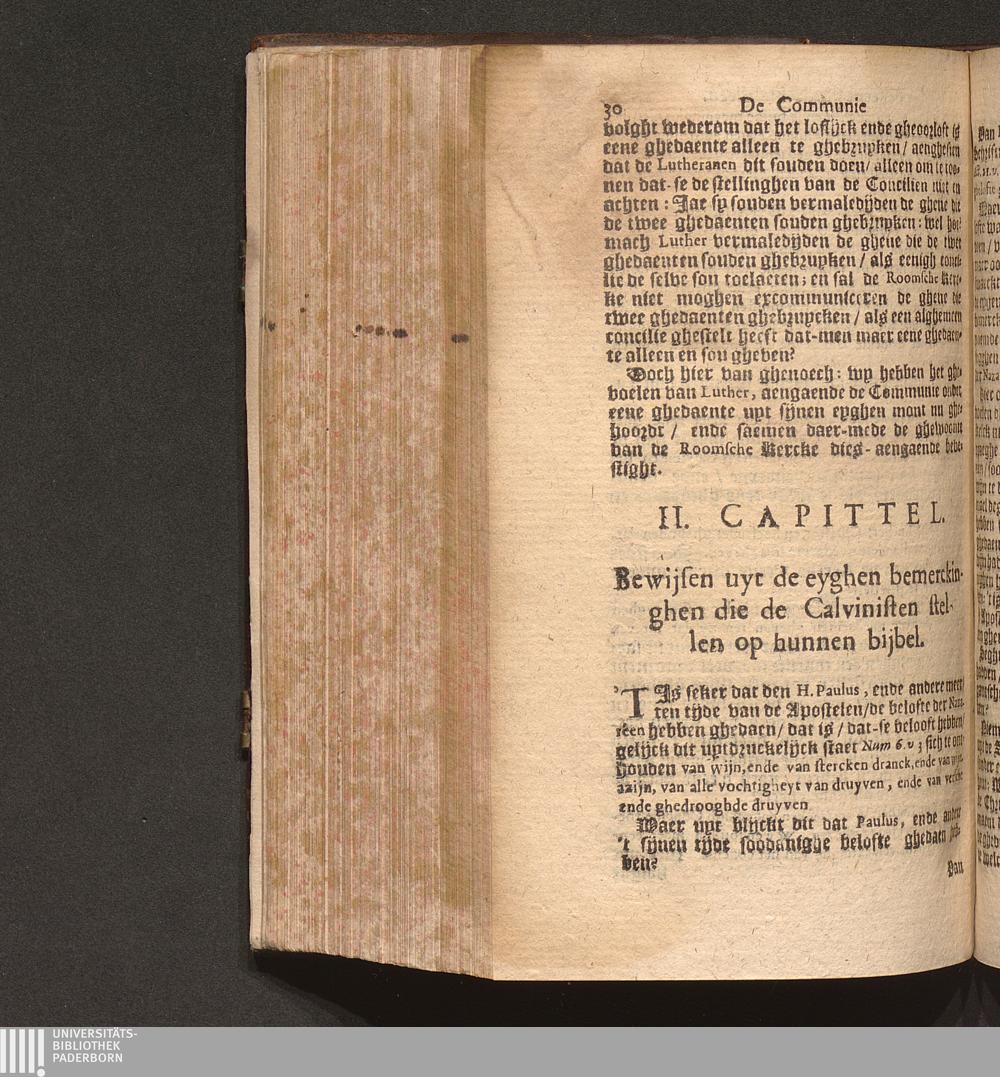 IV. Capittel. Vyt de woorden van den H. Paulus wordt bewesen dat het vry staet te Communiceren onder eene ghedaente, ofte onder beyde.