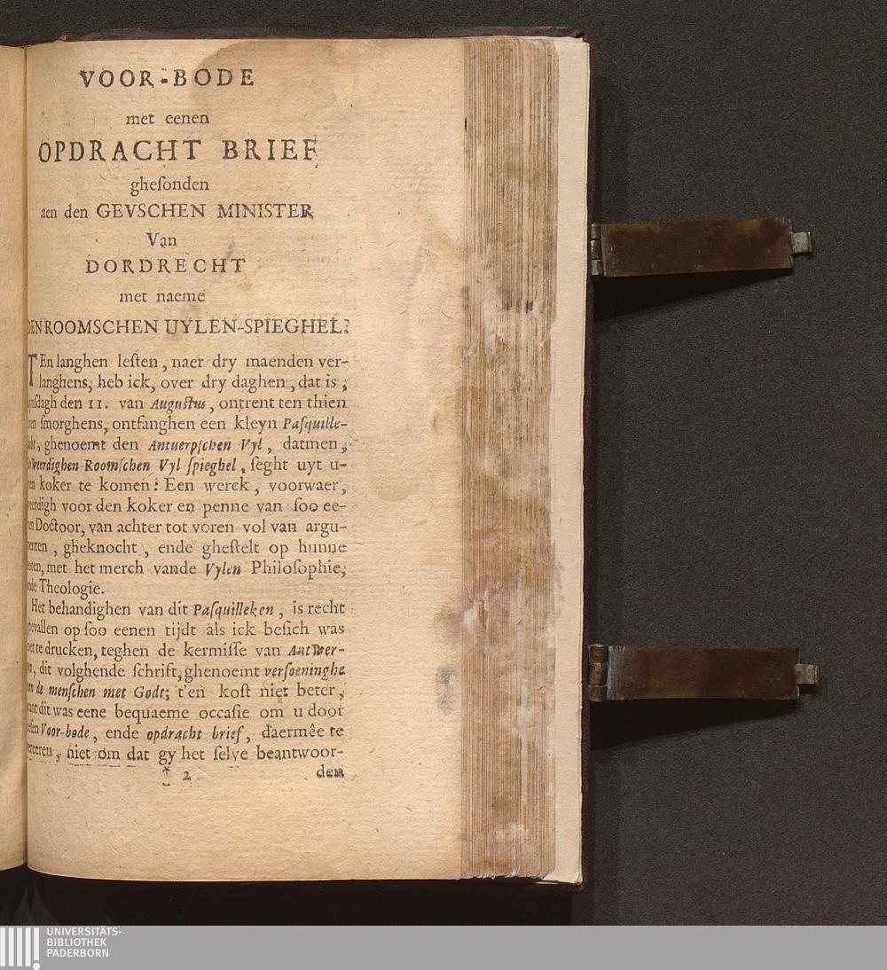 Voor-Bode met eenen Opdracht Brief ghesonden aen den Gevschen Minister Van Dordrecht met naeme Den Roomschen Uylen-Spieghel.