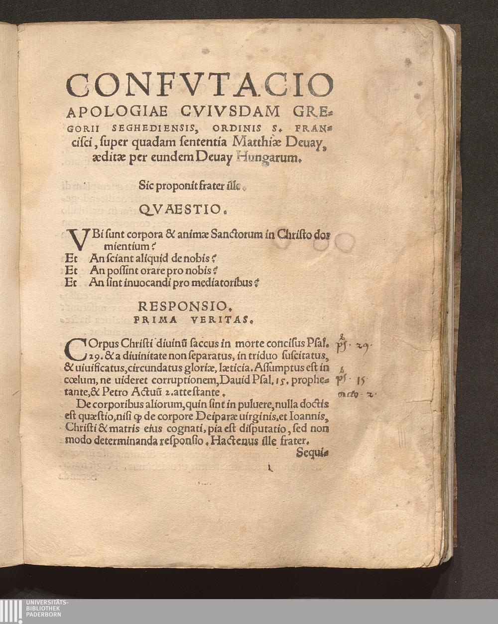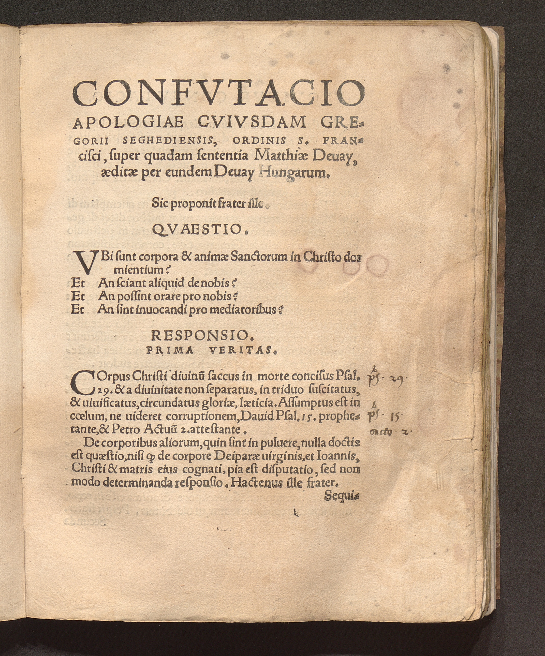 Confvtacio Apologiae Cvivsdam Gregorii Seghediensis, Ordinis S. Francisci, super[...]
