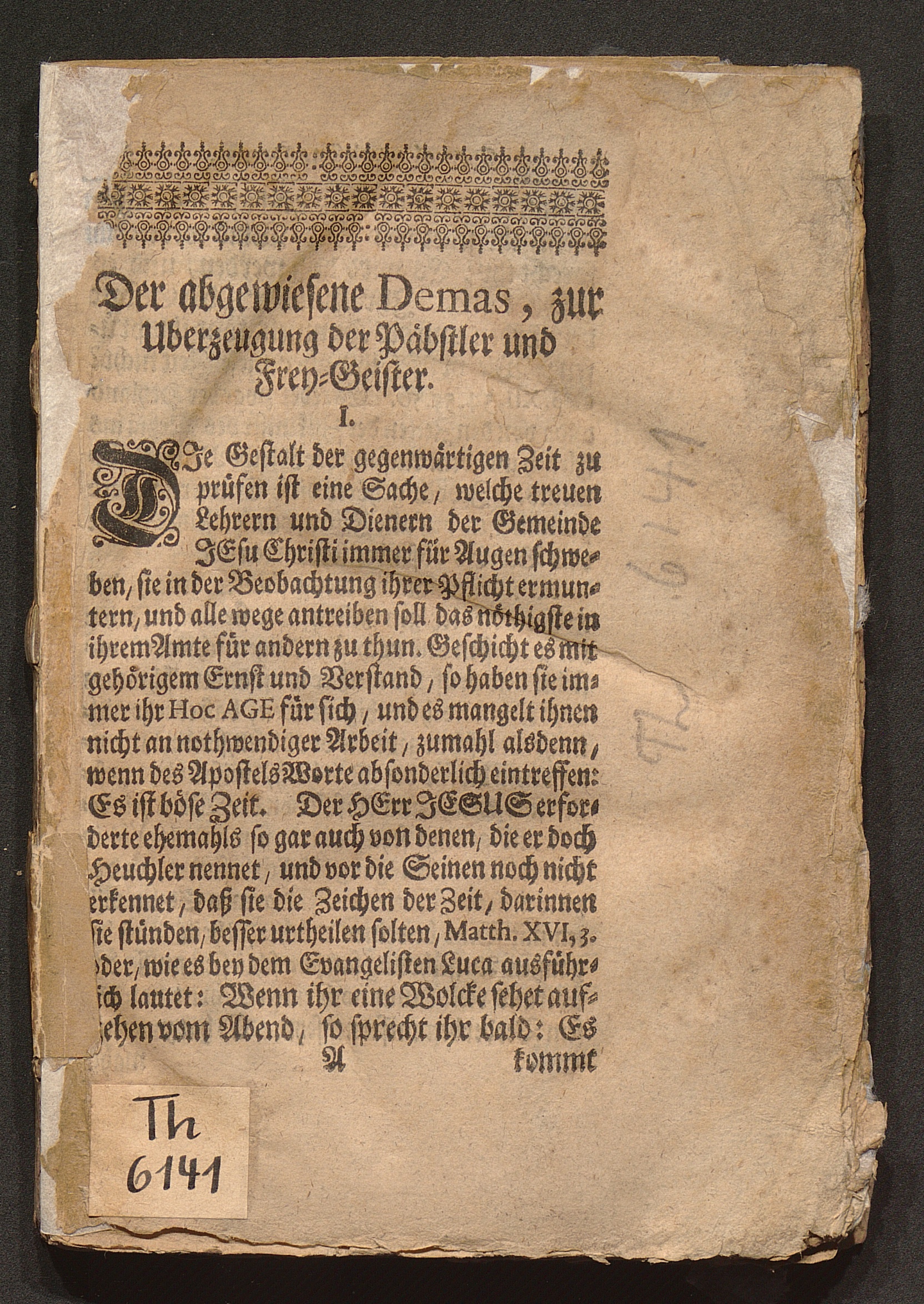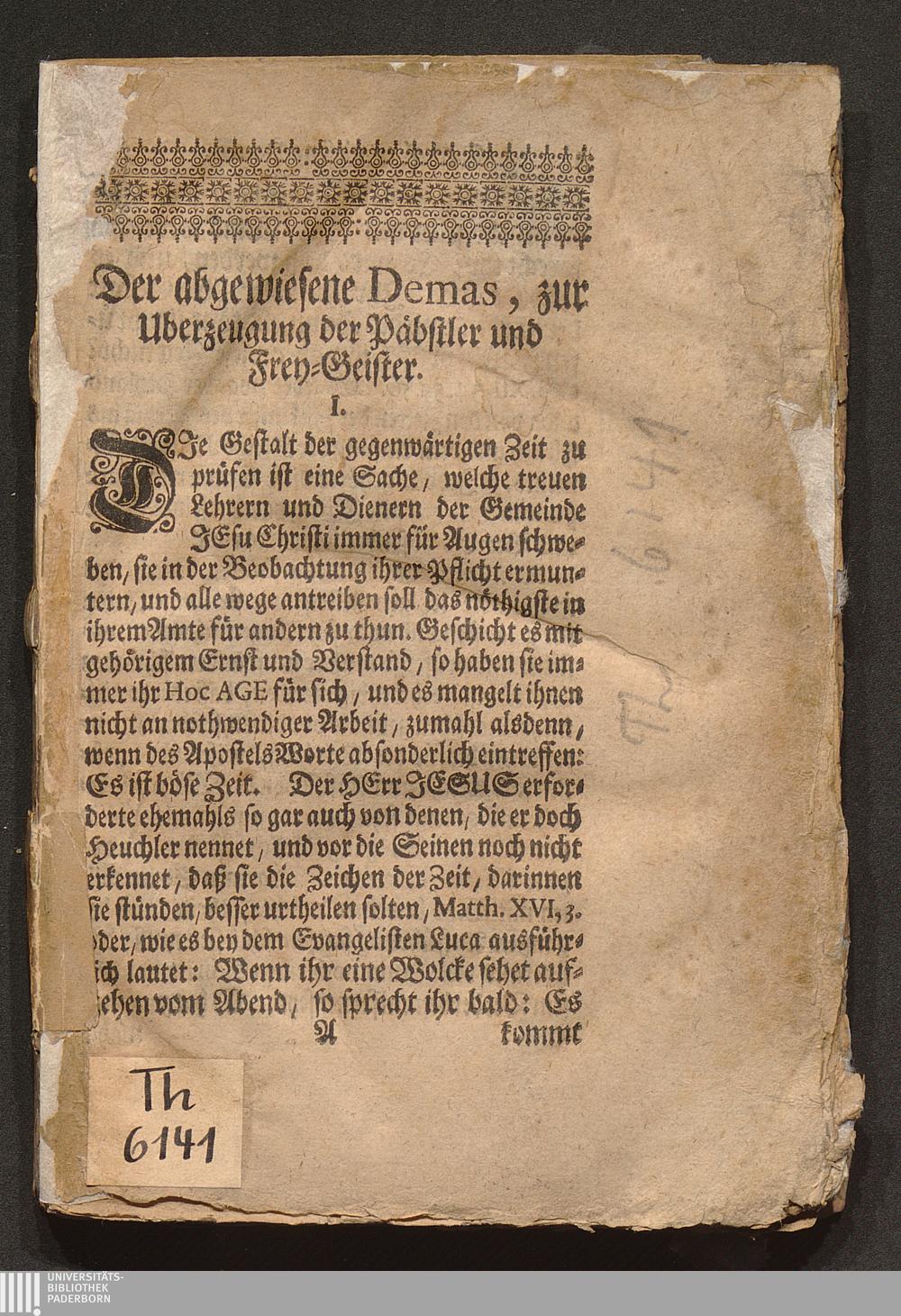 D. Valentin Ernst Löschers, Ober-Consistorialn und Superintend. zu Dreßden, Abgewiesener Demas, Zur Uberzeugung der Päbstler, Und Der den Abfall befördernden Frey-Geister : nebst angehengten Documenten Von einigen Päbstischen Dingen, so mit Hrn. Hertzogs Jul. zu Braunschweig-Lüneb. Hrn. Söhnen vorgegangen ...