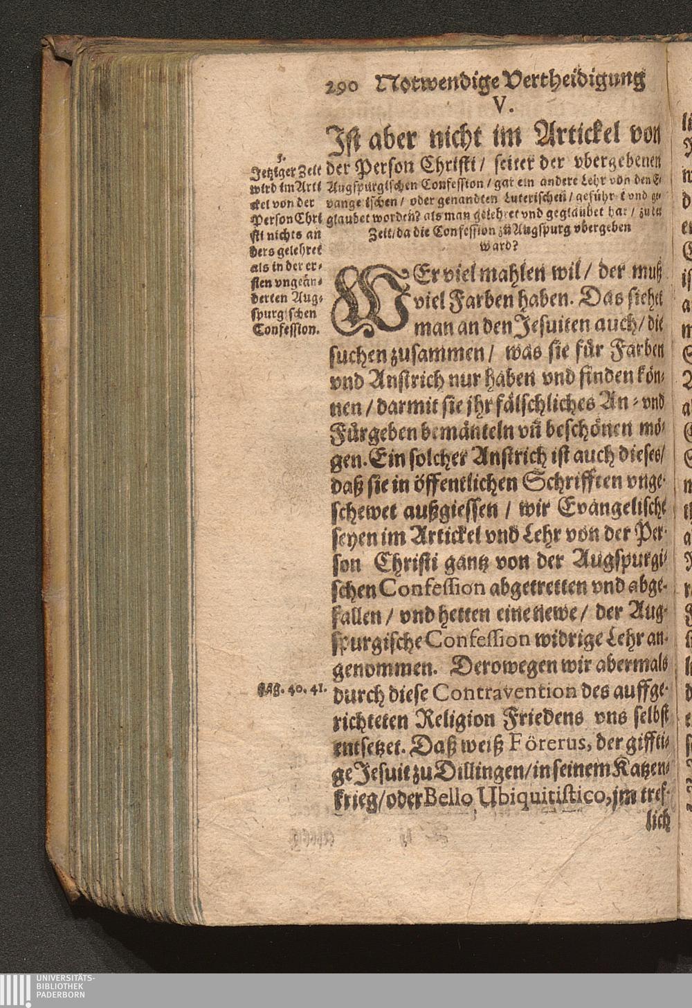 Notwendige Vertheidigung/ Des heiligen Römischen Reichs Evangelischer ChurFürsten vnd Ständte AugApffels : Nemblich der Wahren/ reinen/ vngeänderten/ Käyser Carln dem Fünfften Hochlöblichster Gedechtniß/ Anno 1530 vbergebenen Augspurgischen Confession, vnd des auff dieselbe gerichteten hochverpoenten ReligionFrieds ... ; Erstlich gedruckt zu Leypzig. M.DC.XXIX. / Auff sonderbahren ... Befelch ... Herrn Johann Georgens/ Hertzogen zu Sachsen ... Verfasset ... Durch Höchstgedachter Jh. Churfürstl. Durchl. hierzu verordnete Theologen [i. e. Matthias Hoë von Hoënegg]