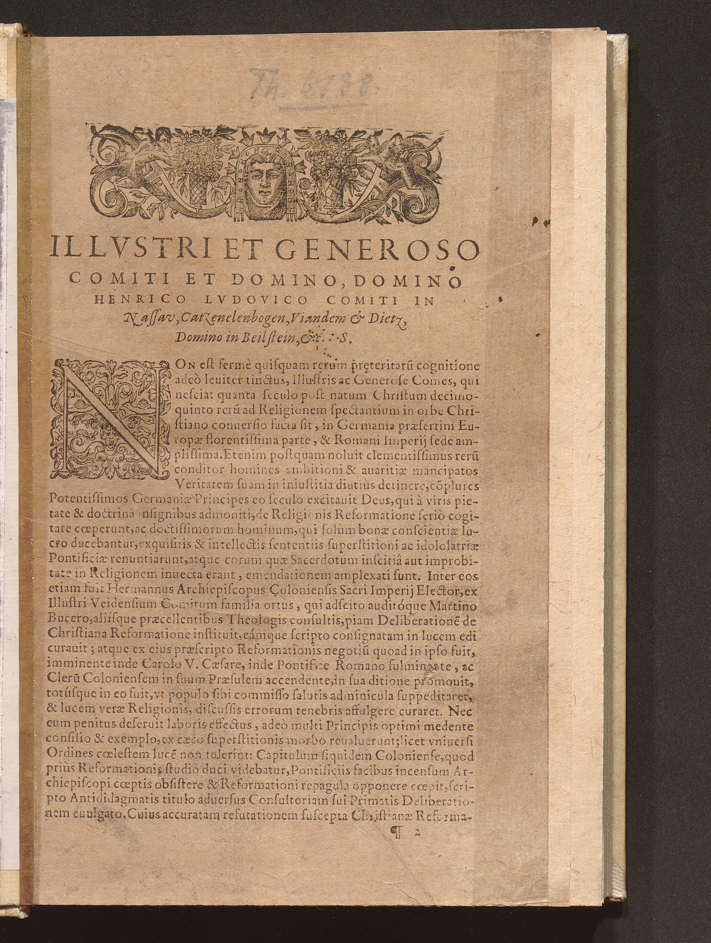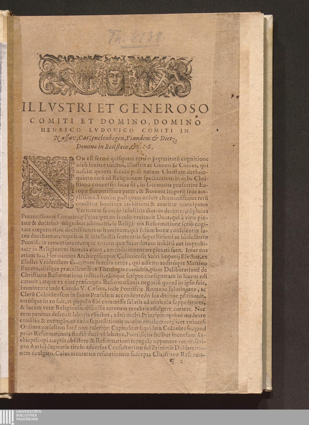 Constans Defensio, Ex S. Scriptvra, Et Vera Catholica Doctrina, Atqve Observatione Vniuersalis Christianæ Ecclesiæ Deliberationis de Christiana Reformatione : Quam Reuerendißimus in Deo Pater, Princeps & Dominus D. Hermannvs Archiepiscopus Coloniensis, & Princeps Elector, &c. iam antè publicauit ... / Auctore D. Martino Bvcero