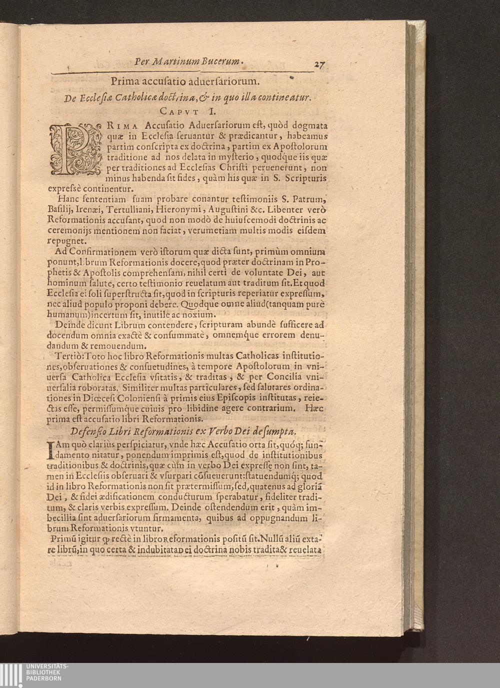Constans Defensio, Ex S. Scriptvra, Et Vera Catholica Doctrina, Atqve Observatione Vniuersalis Christianæ Ecclesiæ Deliberationis de Christiana Reformatione : Quam Reuerendißimus in Deo Pater, Princeps & Dominus D. Hermannvs Archiepiscopus Coloniensis, & Princeps Elector, &c. iam antè publicauit ... / Auctore D. Martino Bvcero