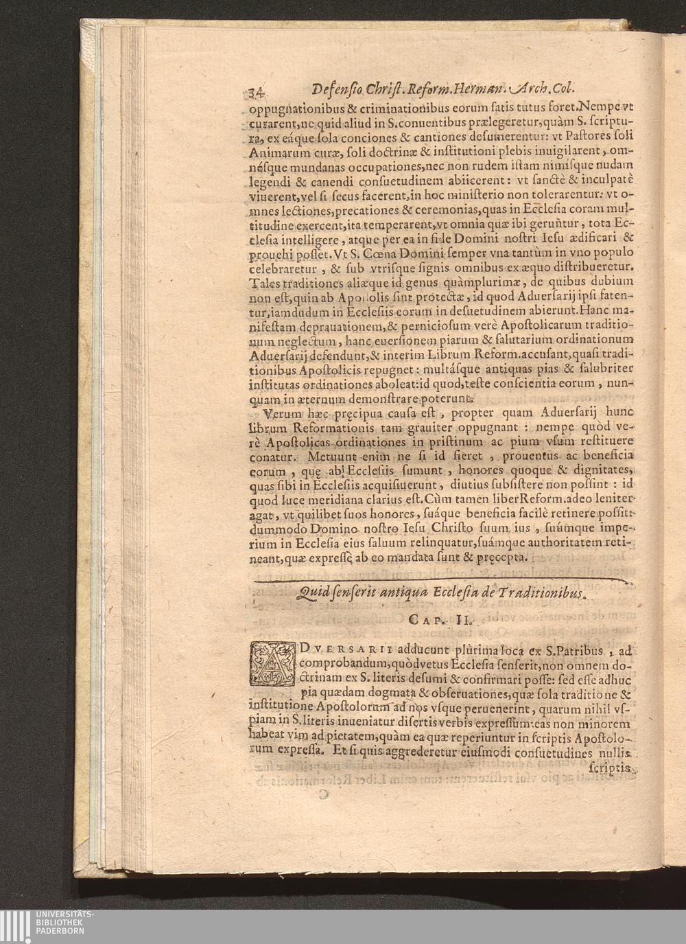 Constans Defensio, Ex S. Scriptvra, Et Vera Catholica Doctrina, Atqve Observatione Vniuersalis Christianæ Ecclesiæ Deliberationis de Christiana Reformatione : Quam Reuerendißimus in Deo Pater, Princeps & Dominus D. Hermannvs Archiepiscopus Coloniensis, & Princeps Elector, &c. iam antè publicauit ... / Auctore D. Martino Bvcero